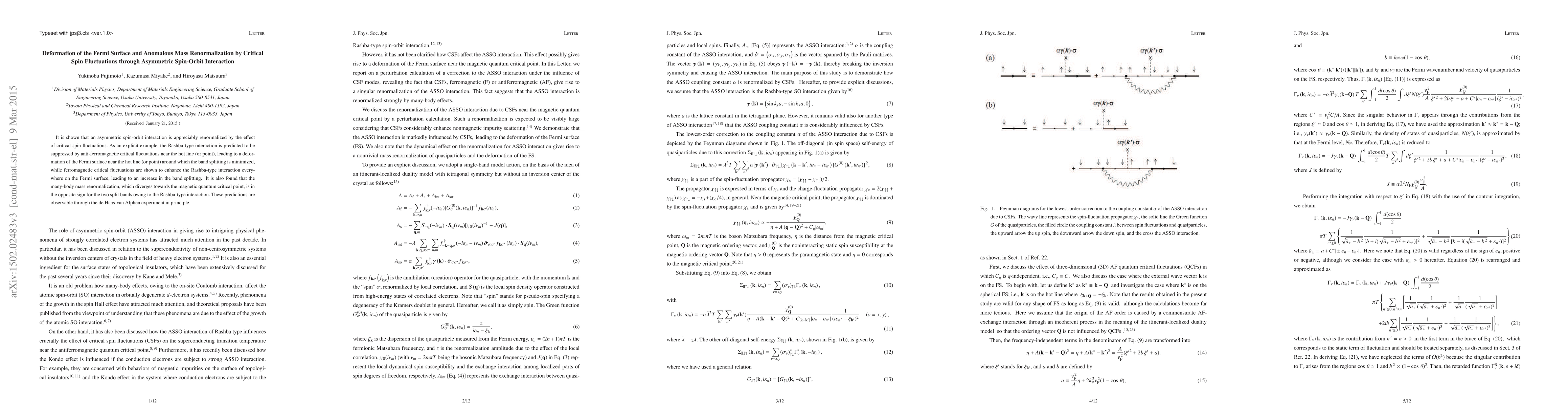 It is shown that an asymmetric spin-orbit interaction is appreciably renormalized by the effect of critical spin fluctuations. As an explicit example, the Rashba-type interaction is predicted to be suppressed by anti-ferromagnetic critical fluctuations near the hot line (or point), leading to a deformation of the Fermi surface near the hot line (or point) around which the band splitting is decreased, while ferromagnetic critical fluctuations are shown to enhance the Rashba-type interaction everywhere on the Fermi surface, leading to an increase in the band splitting. It is also found that the many-body mass renormalization, which diverges towards the magnetic quantum critical point, is in the opposite sign for the two split bands by the Rashba-type interaction. These predictions are observable by the de Haas-van Alphen (dHvA) effect in principle.