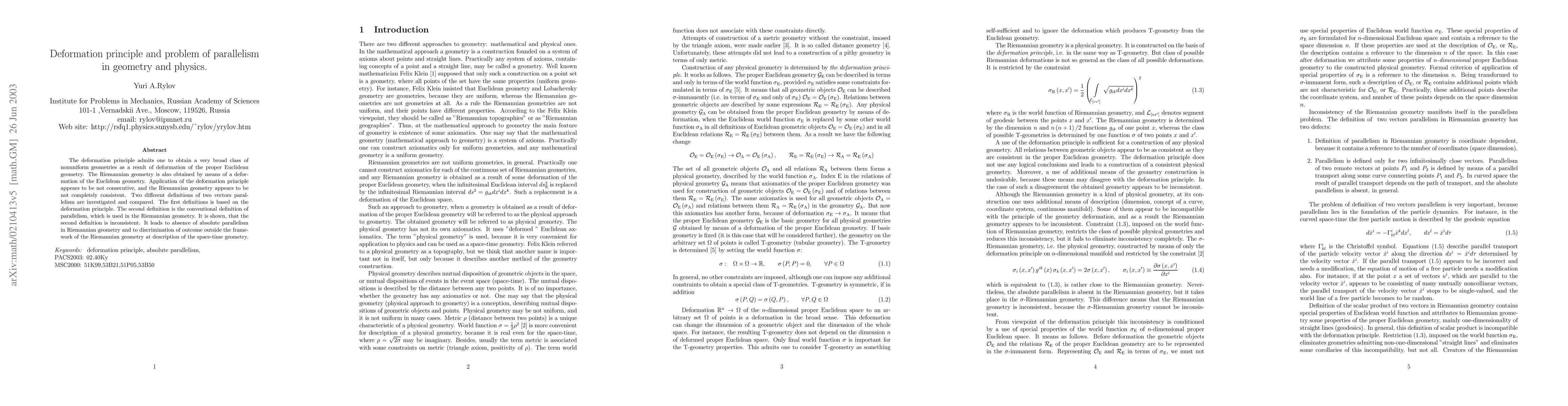 The deformation principle admits one to obtain a very broad class of nonuniform geometries as a result of deformation of the proper Euclidean geometry. The Riemannian geometry is also obtained by means of a deformation of the Euclidean geometry. Application of the deformation principle appears to be not consecutive, and the Riemannian geometry appears to be not completely consistent. Two different definitions of two vectors parallelism are investigated and compared. The first definitions is based on the deformation principle. The second definition is the conventional definition of parallelism, which is used in the Riemannian geometry. It is shown, that the second definition is inconsistent. It leads to absence of absolute parallelism in Riemannian geometry and to discrimination of outcome outside the framework of the Riemannian geometry at description of the space-time geometry.