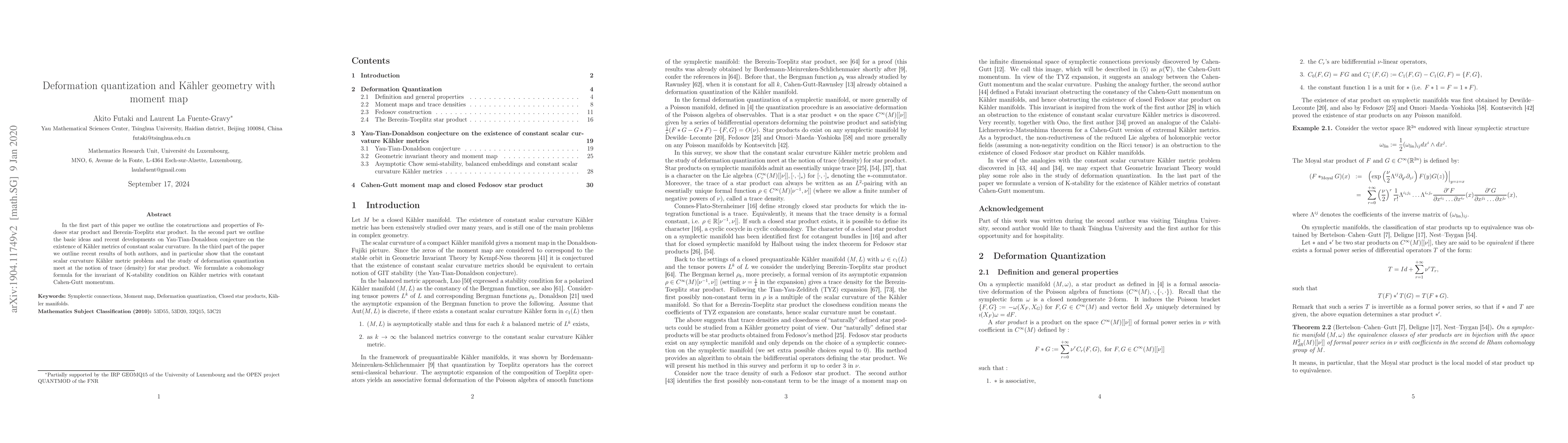 Researchers explore the connection between deformation quantization and K"ahler geometry, introducing a cohomology formula for invariant conditions on K"ahler metrics with constant scalar curvature.
