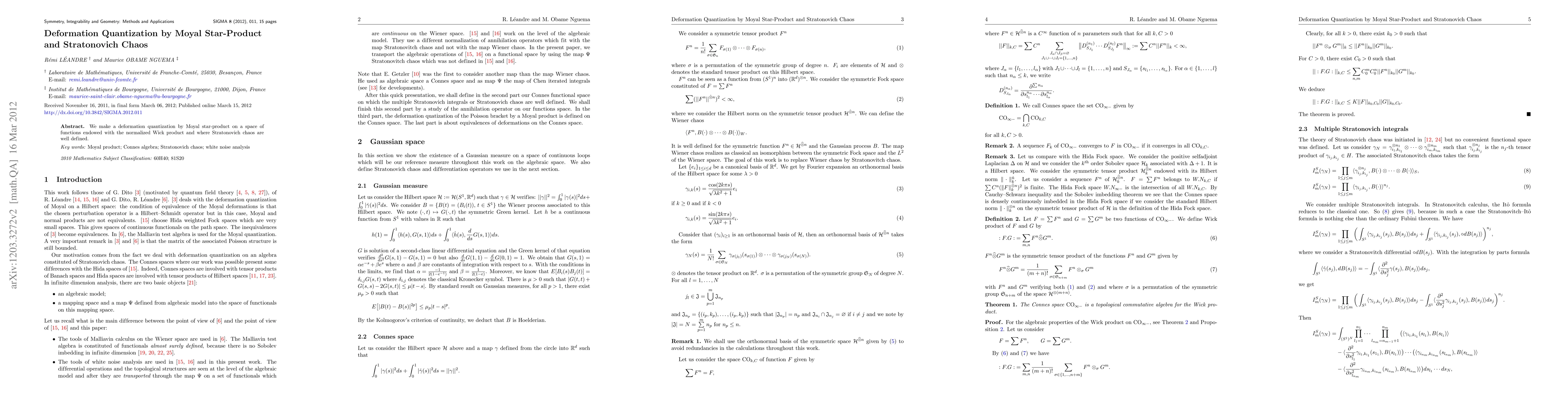 This paper explores deformation quantization using the Moyal star-product on a function space equipped with the normalized Wick product, where Stratonovich chaos is also defined. The study aims to bridge classical and quantum mechanics through this novel quantization method.