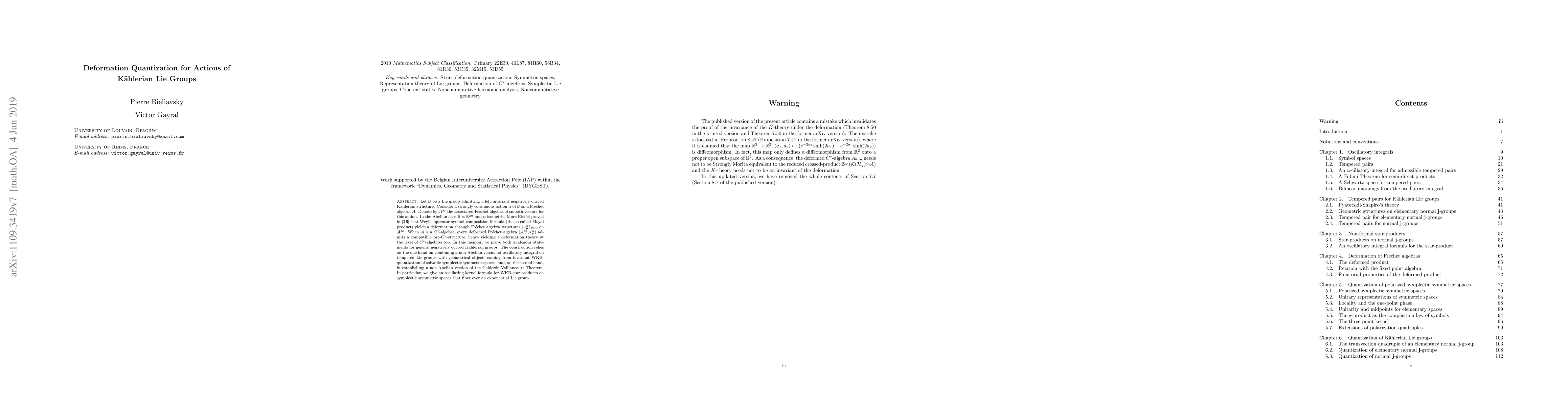 This paper extends Rieffel's deformation quantization results to the setting of non-isometric actions of negatively curved Kählerian Lie groups on Fréchet algebras. It combines non-Abelian oscillatory integrals and invariant WKB-quantization to establish a non-Abelian version of the Calderón-Vaillancourt Theorem.