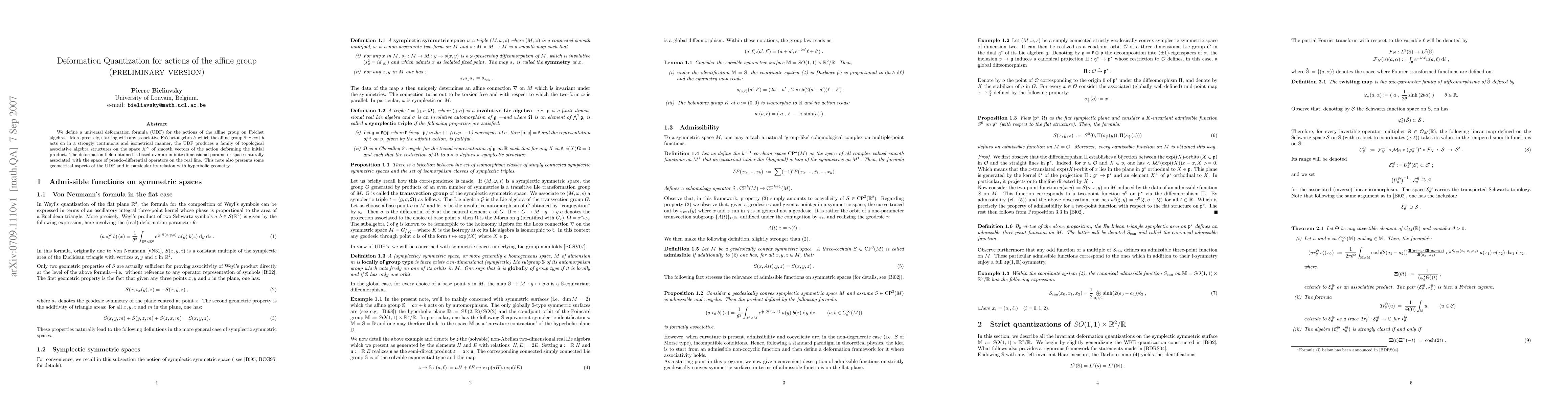 This paper introduces a universal deformation formula for affine group actions on Fréchet algebras, generating a family of associative algebra structures that deform the initial product. It connects the deformation field to an infinite-dimensional parameter space linked with pseudo-differential operators and discusses its geometrical implications, particularly ties to hyperbolic geometry.