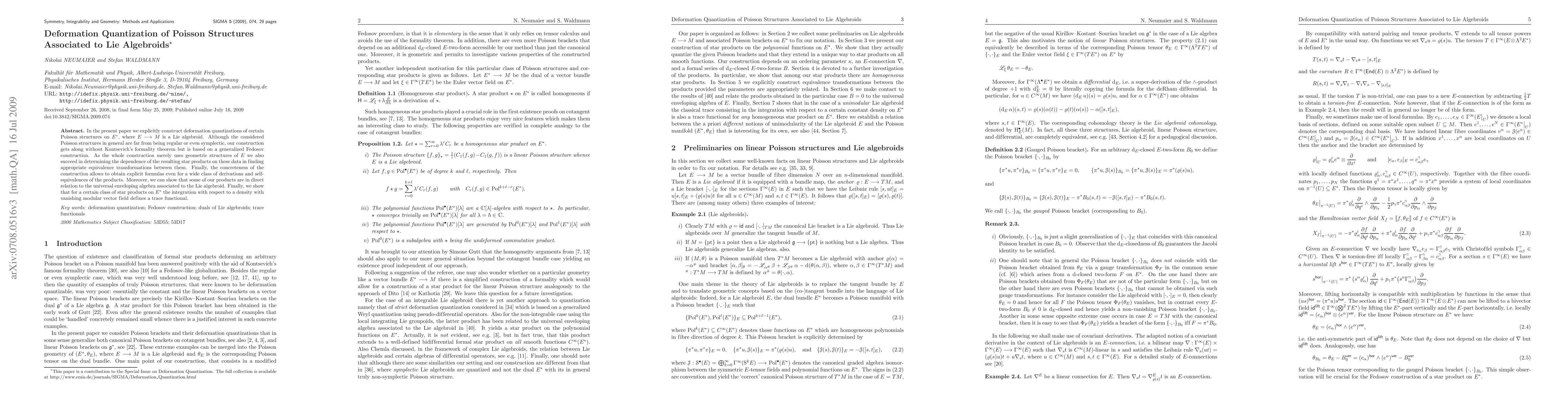 In the present paper we explicitly construct deformation quantizations of certain Poisson structures on E^*, where E -> M is a Lie algebroid. Although the considered Poisson structures in general are far from being regular or even symplectic, our construction gets along without Kontsevich's formality theorem but is based on a generalized Fedosov construction. As the whole construction merely uses geometric structures of E we also succeed in determining the dependence of the resulting star products on these data in finding appropriate equivalence transformations between them. Finally, the concreteness of the construction allows to obtain explicit formulas even for a wide class of derivations and self-equivalences of the products. Moreover, we can show that some of our products are in direct relation to the universal enveloping algebra associated to the Lie algebroid. Finally, we show that for a certain class of star products on E^* the integration with respect to a density with vanishing modular vector field defines a trace functional.