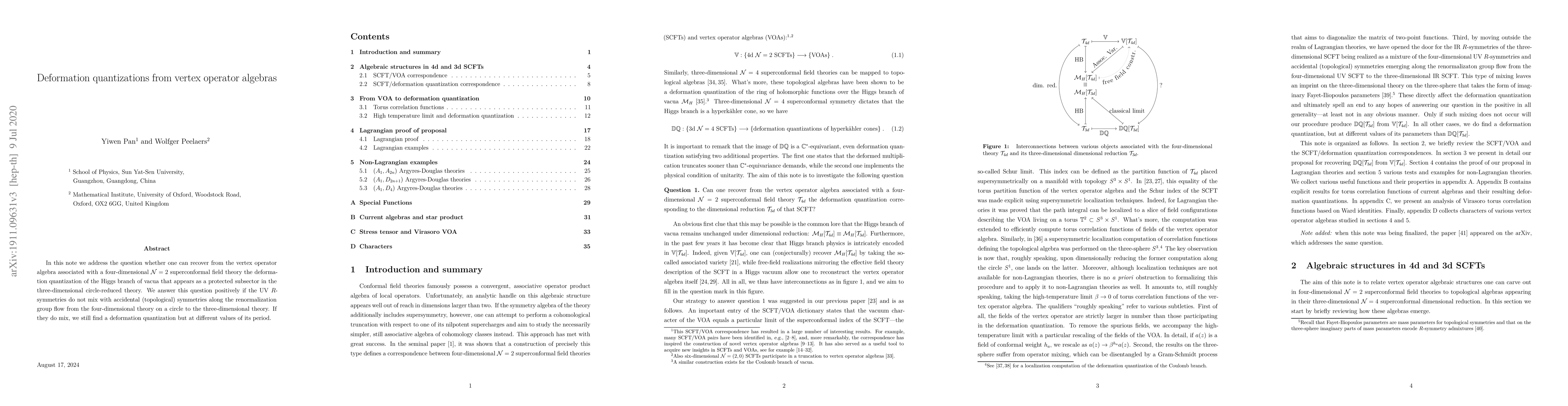 In this note we address the question whether one can recover from the vertex operator algebra associated with a four-dimensional N=2 superconformal field theory the deformation quantization of the Higgs branch of vacua that appears as a protected subsector in the three-dimensional circle-reduced theory. We answer this question positively if the UV R-symmetries do not mix with accidental (topological) symmetries along the renormalization group flow from the four-dimensional theory on a circle to the three-dimensional theory. If they do mix, we still find a deformation quantization but at different values of its period.