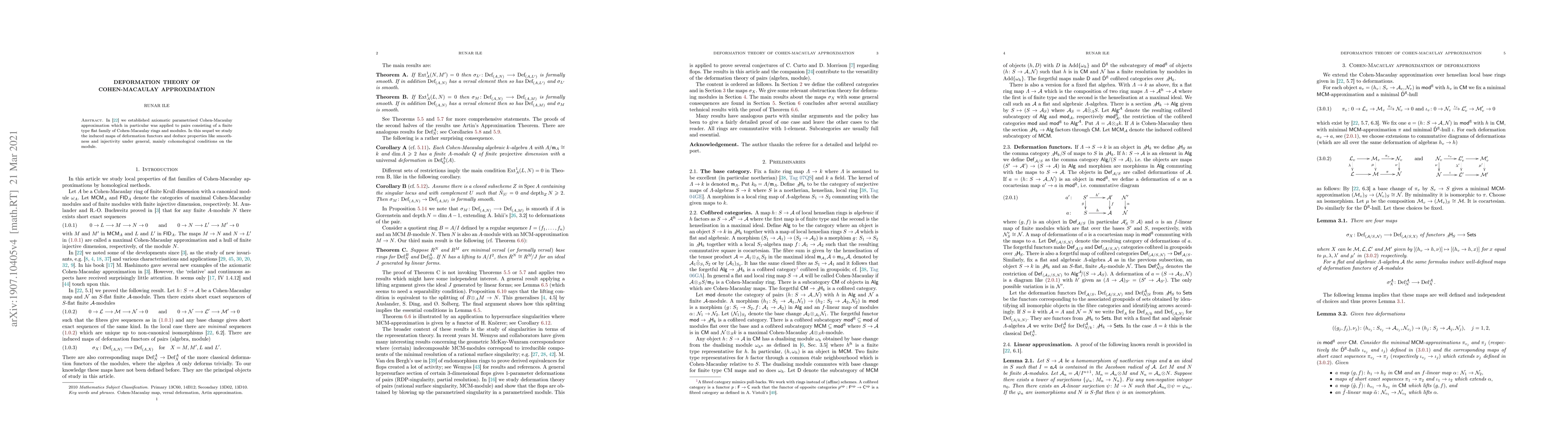 This paper explores the deformation theory for Cohen-Macaulay approximation, focusing on the induced maps of deformation functors and deriving properties such as smoothness and injectivity under cohomological conditions on the module. The study builds on previous work establishing axiomatic parametrised Cohen-Macaulay approximation.