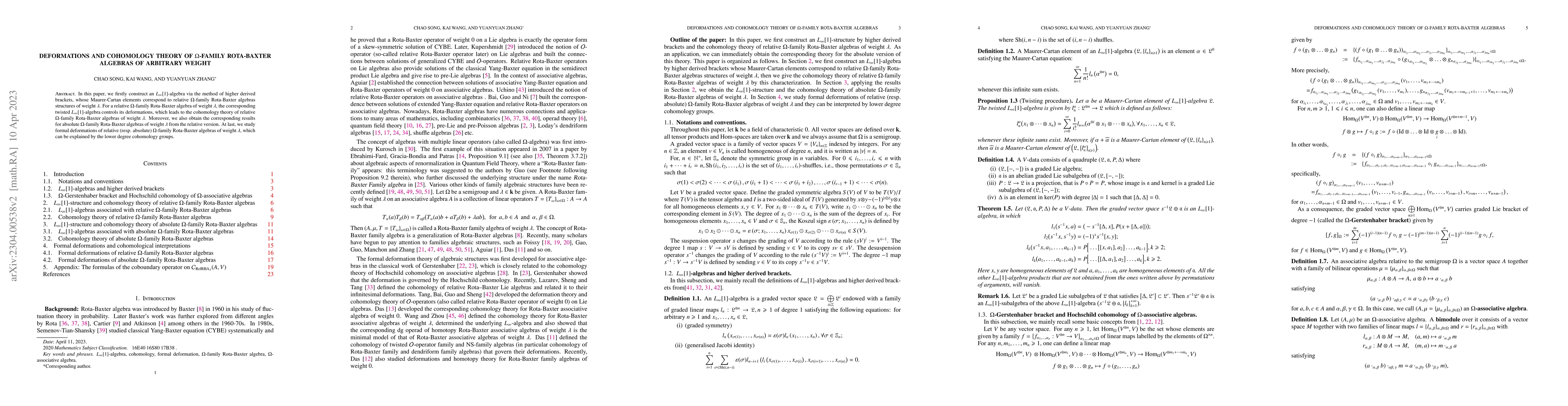 This paper constructs an $L_\infty[1]$-algebra governing the deformations of $\Omega$-family Rota-Baxter algebras of arbitrary weight $\lambda$, establishing a cohomology theory for these structures. The study extends to both relative and absolute versions, elucidating formal deformations via lower degree cohomology groups.