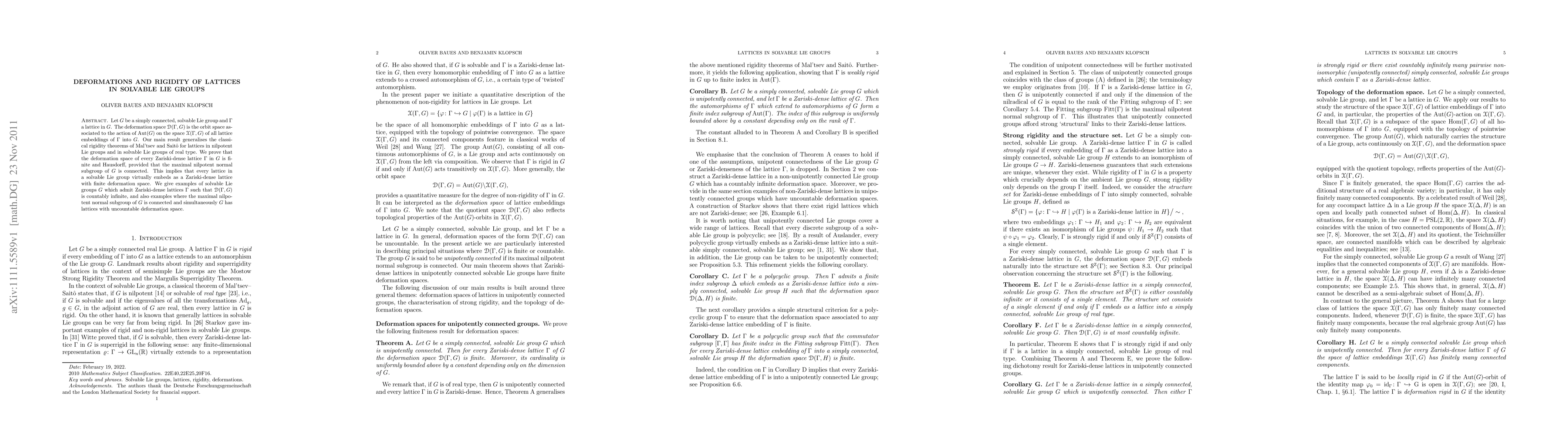 This paper generalizes classical rigidity theorems for lattices in solvable Lie groups, proving that the deformation space of every Zariski-dense lattice is finite and Hausdorff if the maximal nilpotent normal subgroup is connected. It also provides examples where the deformation space can be countably infinite or uncountable.
