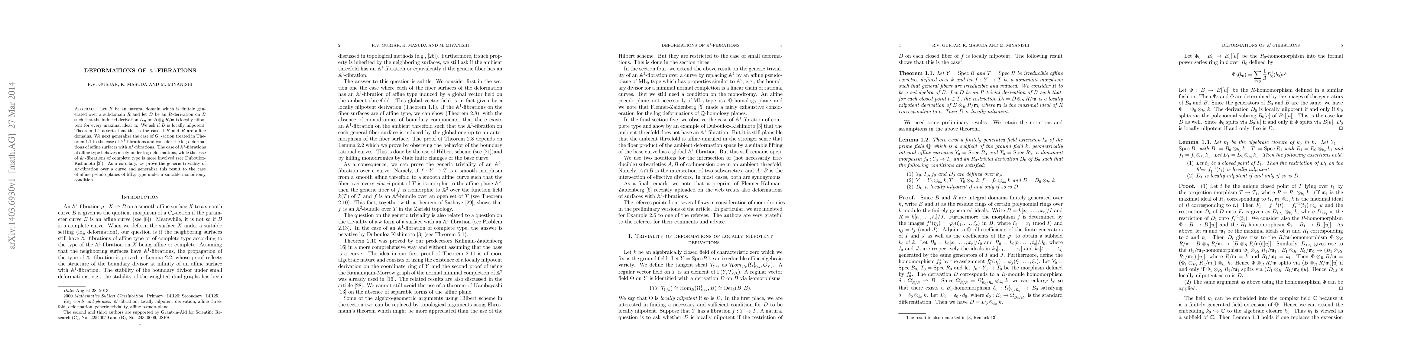 We consider log deformations of affine surfaces with fibrations by the affine lines. Such a fibration is of affine type (resp. of complete type) if the base curve of the fibration is an affine curve (resp. a complete curve). The case of affine type is mainly treated in the article.