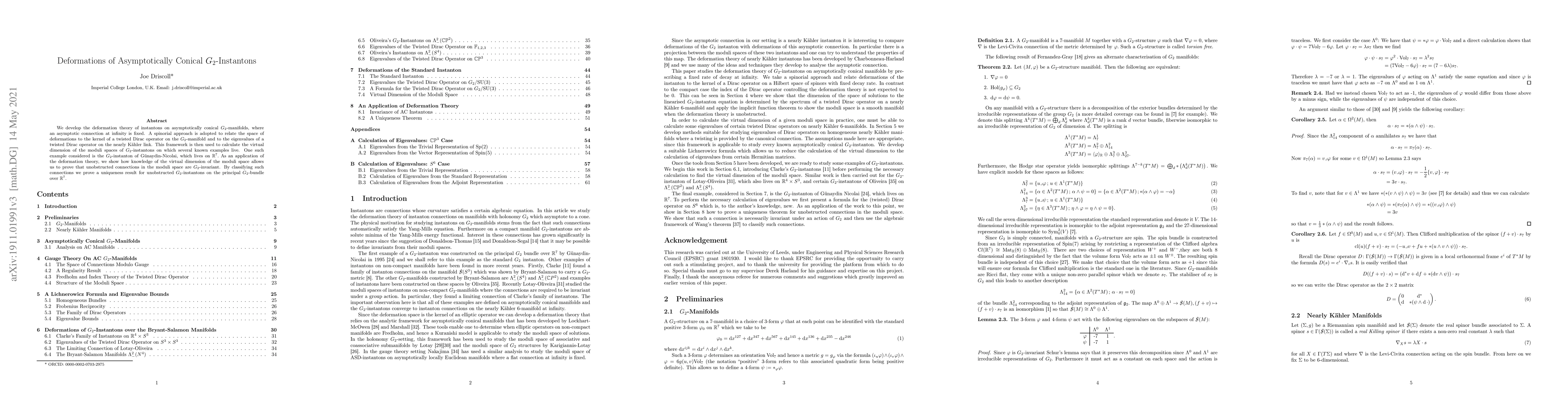 We develop the deformation theory of instantons on asymptotically conical $G_2$-manifolds, where an asymptotic connection at infinity is fixed. A spinorial approach is adopted to relate the space of deformations to the kernel of a twisted Dirac operator on the $G_2$-manifold and to the eigenvalues of a twisted Dirac operator on the nearly K\"ahler link. This framework is then used to calculate the virtual dimension of the moduli spaces of $G_2$-instantons on which several known examples live. One such example considered is the $G_2$-instanton of G\"unaydin-Nicolai, which lives on $R^7$. As an application of the deformation theory, we show how knowledge of the virtual dimension of the moduli space allows us to prove that unobstructed connections in the moduli space are $G_2$-invariant. By classifying such connections we prove a uniqueness result for unobstructed $G_2$-instantons on the principal $G_2$-bundle over $R^7$.
