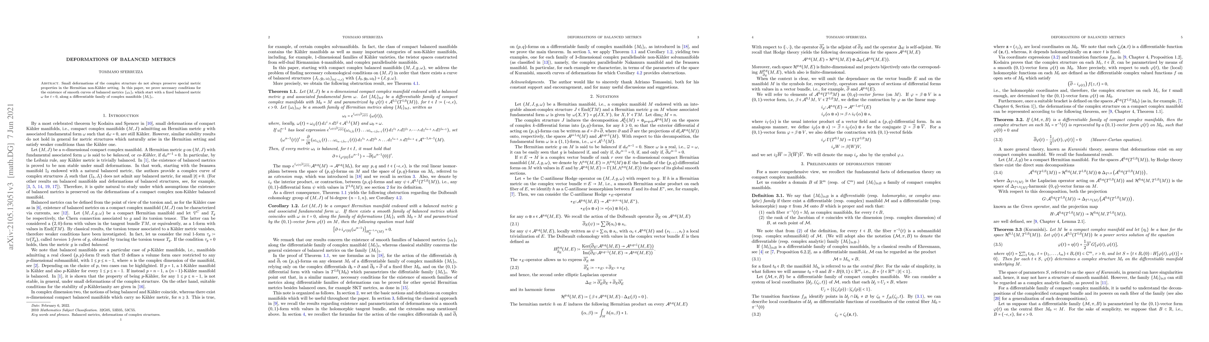 This paper investigates the conditions under which small deformations of complex structures maintain balanced metric properties in the Hermitian non-Kähler setting. It identifies necessary conditions for the existence of smooth curves of balanced metrics starting from a fixed balanced metric.