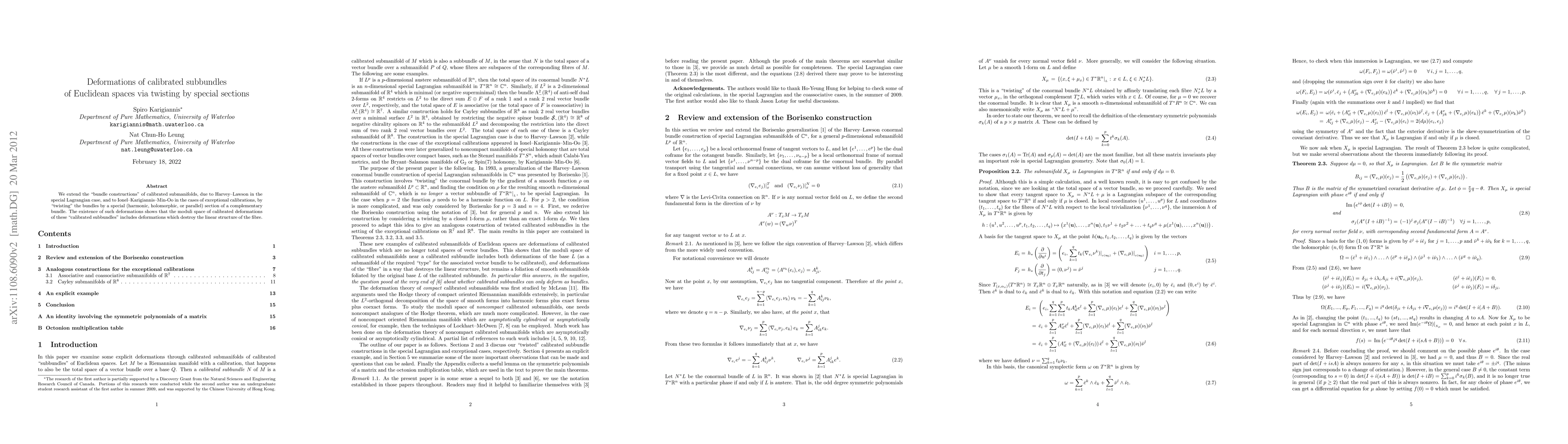 Summary: This paper extends the method of constructing calibrated submanifolds by deforming subbundles through "twisting" with special sections, showing that the moduli space includes deformations that disrupt the linear structure of the fiber. The approach is applicable to both special Lagrangian and exceptional calibrations.