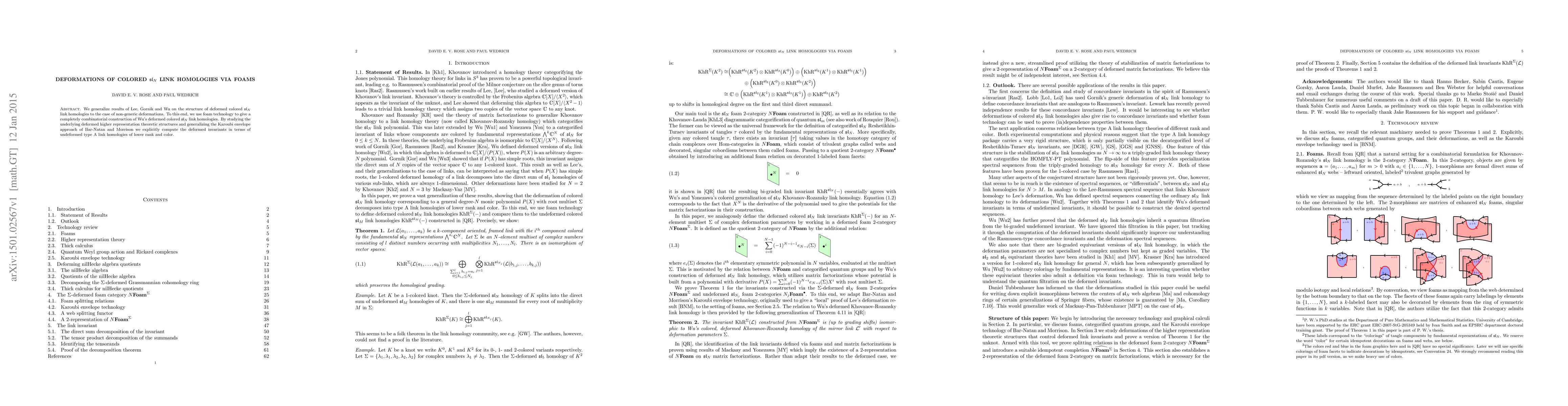 We generalize results of Lee, Gornik and Wu on the structure of deformed colored sl(N) link homologies to the case of non-generic deformations. To this end, we use foam technology to give a completely combinatorial construction of Wu's deformed colored sl(N) link homologies. By studying the underlying deformed higher representation theoretic structures and generalizing the Karoubi envelope approach of Bar-Natan and Morrison we explicitly compute the deformed invariants in terms of undeformed type A link homologies of lower rank and color.
