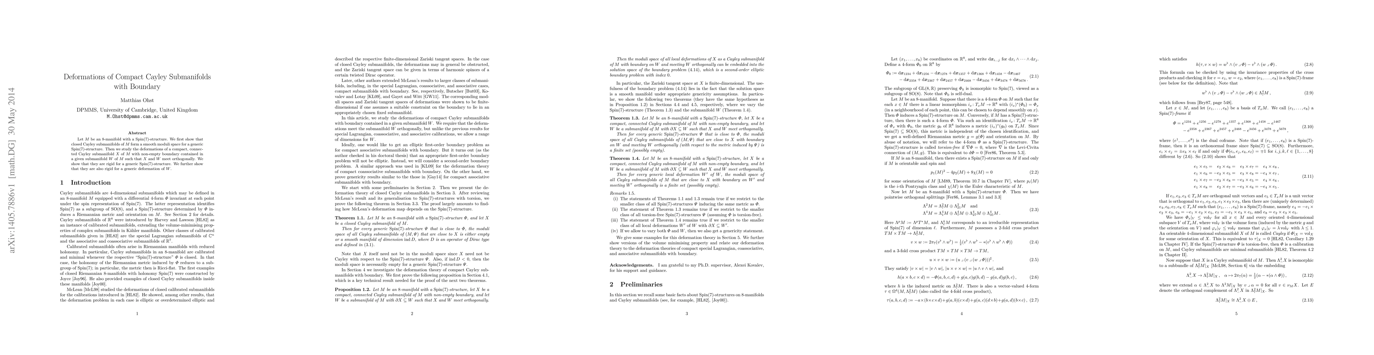 This paper investigates the deformations of compact Cayley submanifolds with boundary in an 8-manifold with a Spin(7)-structure, demonstrating their rigidity under generic conditions and for deformations of the boundary submanifold.