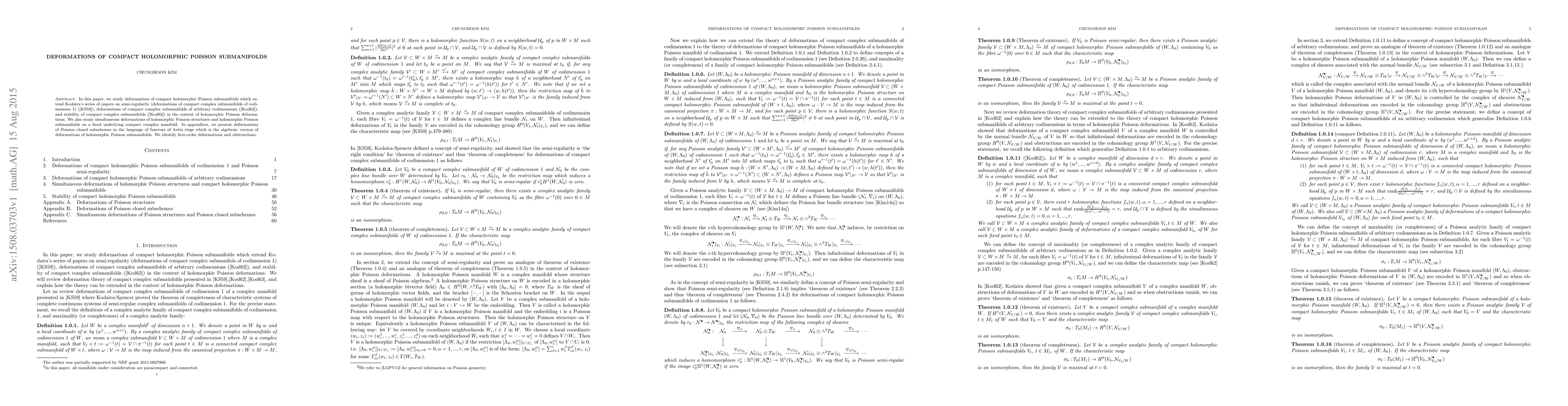 This paper investigates the deformations of compact holomorphic Poisson submanifolds, extending Kodaira's work on complex submanifolds, and explores simultaneous deformations of both Poisson structures and submanifolds. The study identifies first-order deformations and obstructions, and includes an appendix on algebraic deformations using functors of Artin rings.