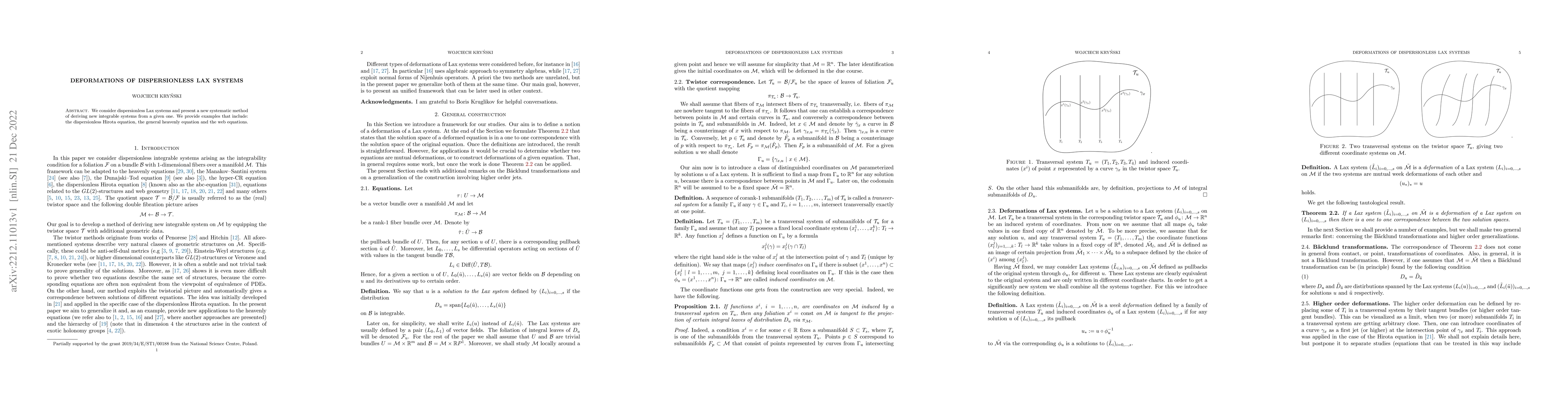 This paper introduces a systematic method for deriving new integrable systems from given dispersionless Lax systems, demonstrating its application through examples such as the dispersionless Hirota equation, the general heavenly equation, and the web equations.