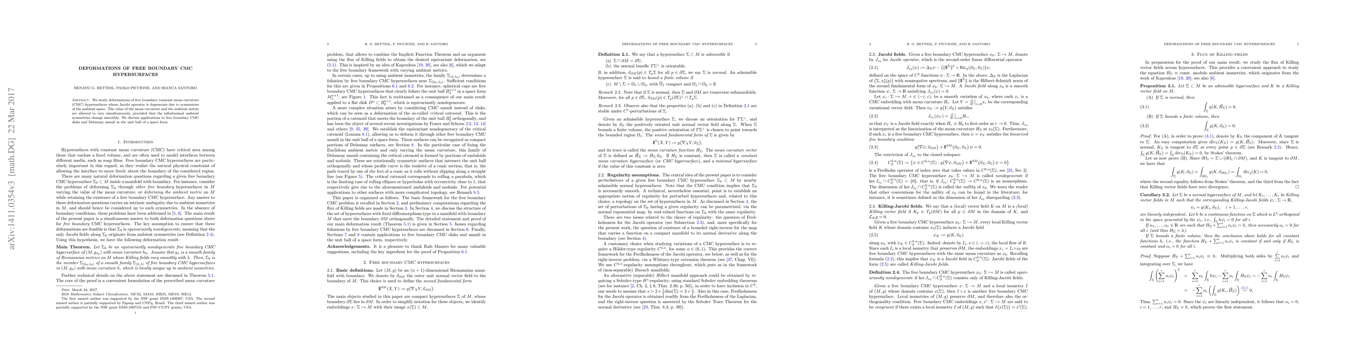 This paper examines deformations of free boundary constant mean curvature hypersurfaces with degenerate Jacobi operators due to ambient space symmetries, allowing variations in mean curvature and ambient metric under smooth changes in infinitesimal symmetries, with applications to free boundary CMC disks and Delaunay annuli.