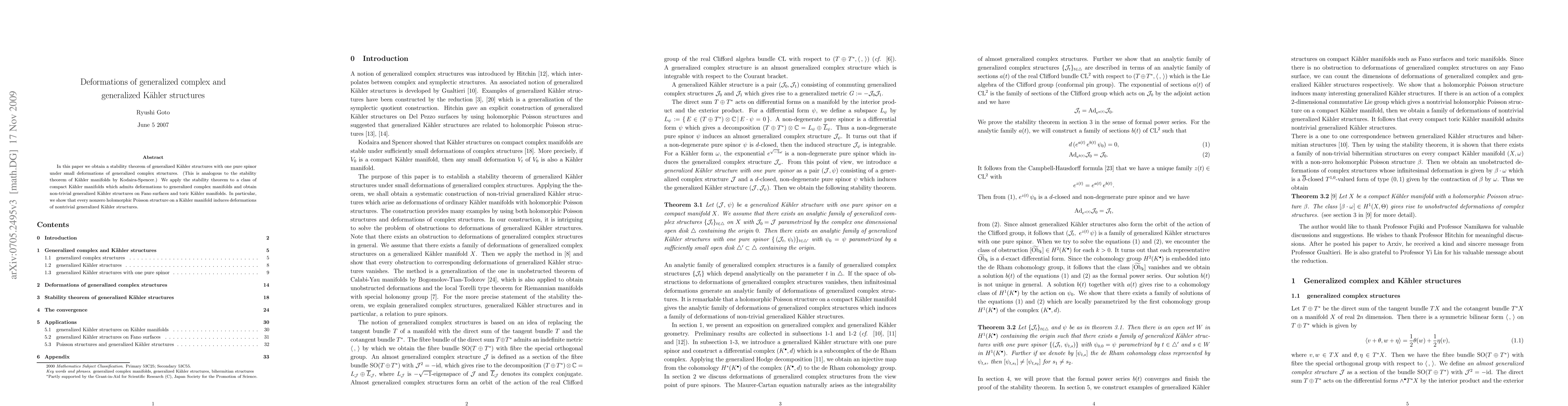 This paper establishes a stability theorem for generalized Kahler structures under small deformations of generalized complex structures, analogous to Kodaira-Spencer's theorem for Kahler manifolds. It applies this theorem to compact Kahler manifolds to uncover non-trivial generalized Kahler structures on Fano surfaces and toric Kahler manifolds, showing that holomorphic Poisson structures can induce such deformations.