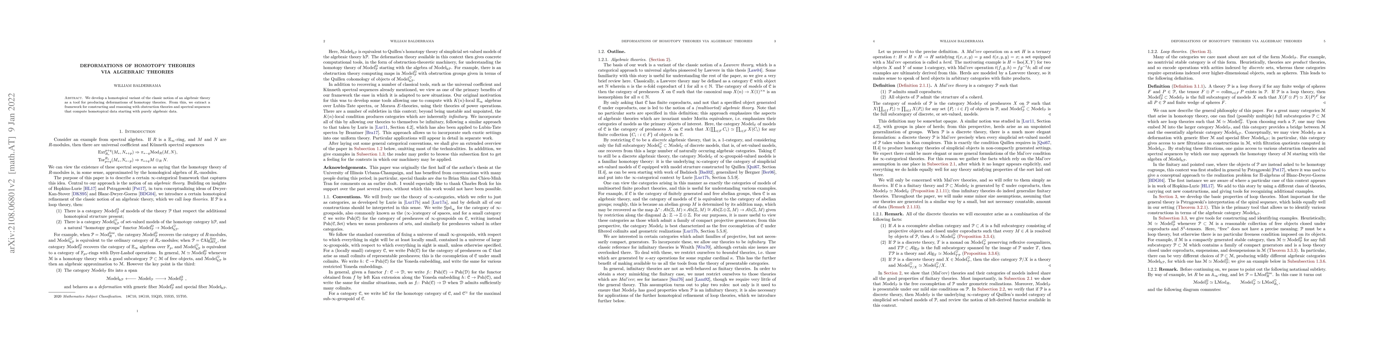 We develop a homotopical variant of the classic notion of an algebraic theory as a tool for producing deformations of homotopy theories. From this, we extract a framework for constructing and reasoning with obstruction theories and spectral sequences that compute homotopical data starting with purely algebraic data.