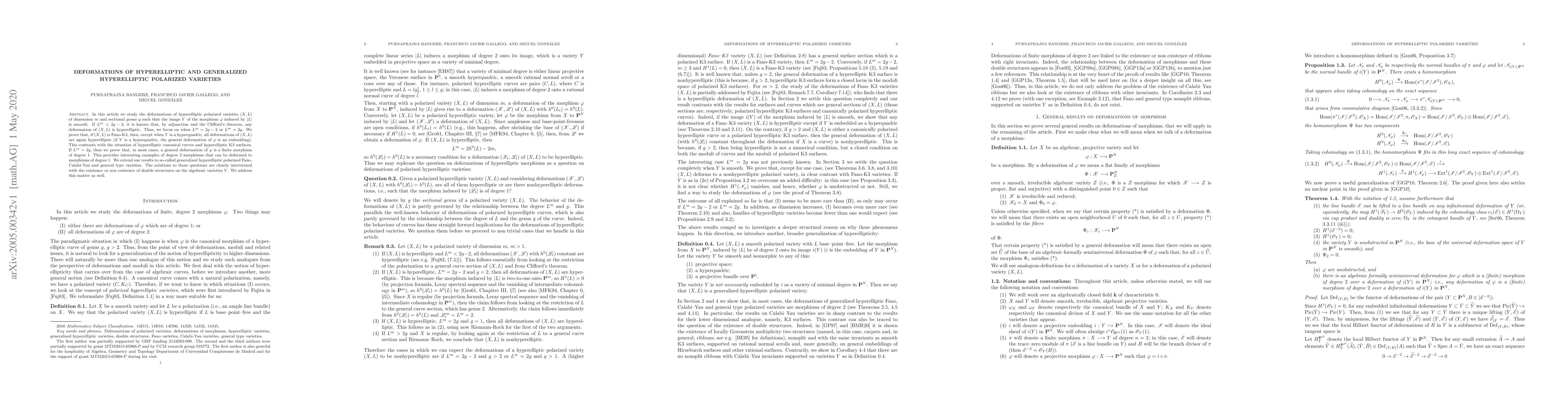 This paper studies deformations of hyperelliptic and generalized hyperelliptic polarized varieties, finding that most Fano-K3 varieties have hyperelliptic deformations except when Y is a hyperquadric.