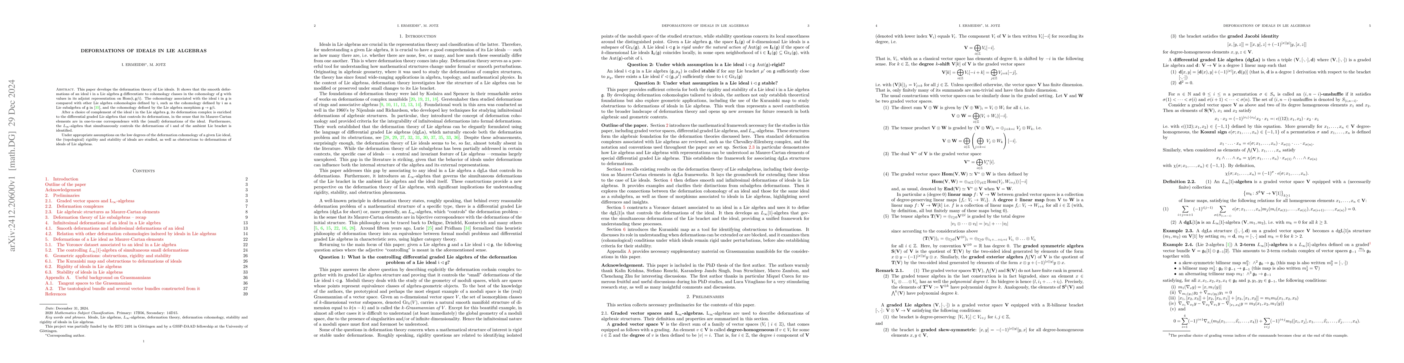 This paper develops a deformation theory for Lie ideals, showing their smooth deformations relate to cohomology classes in the adjoint representation. It identifies the $L_{\infty}$-algebra governing these deformations and examines rigidity, stability, and obstructions under specific low-degree cohomology conditions.