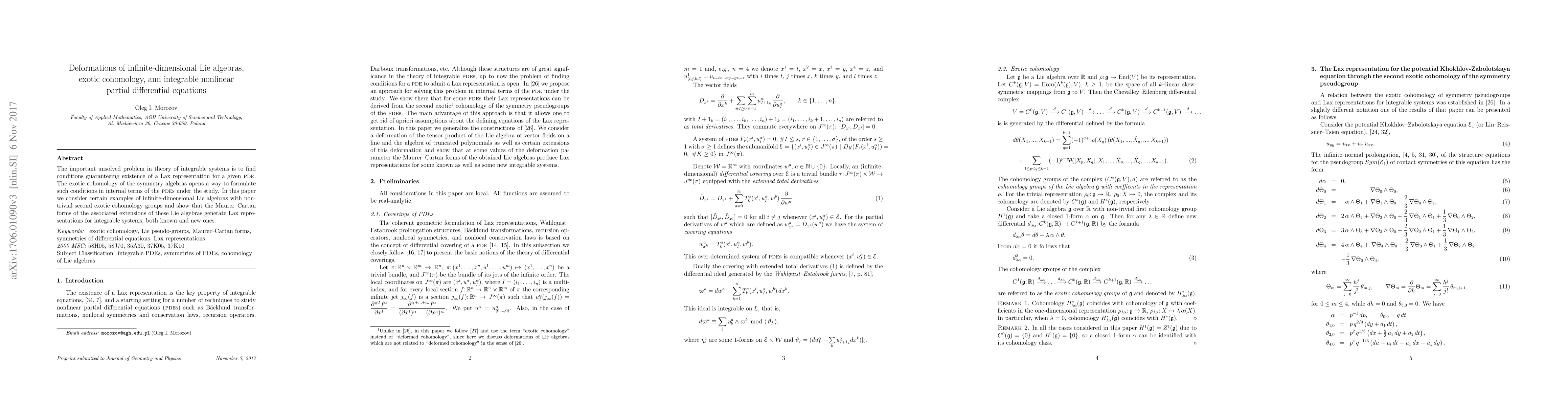 This paper explores the relationship between infinite-dimensional Lie algebras with nontrivial exotic cohomology and their role in generating Lax representations for integrable nonlinear partial differential equations, thereby providing conditions for the existence of such representations.