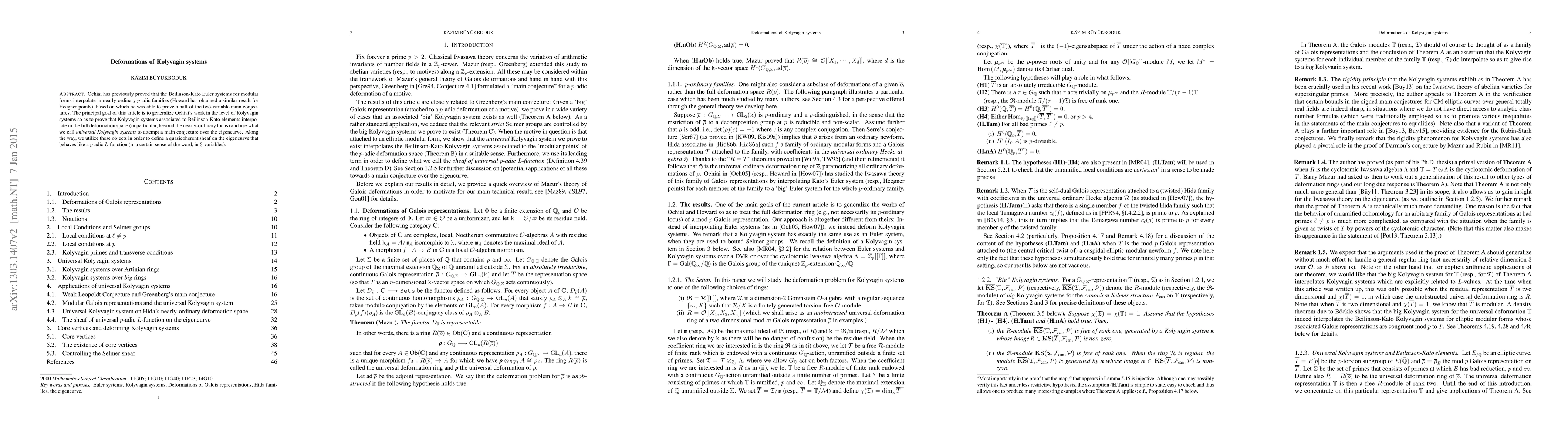 This paper generalizes Ochiai's work on Kolyvagin systems to prove that they interpolate in the full deformation space, not just in the nearly-ordinary locus. The authors aim to use universal Kolyvagin systems to tackle the main conjecture over the eigencurve and define a quasicoherent sheaf on the eigencurve resembling a $p$-adic $L$-function in three variables.