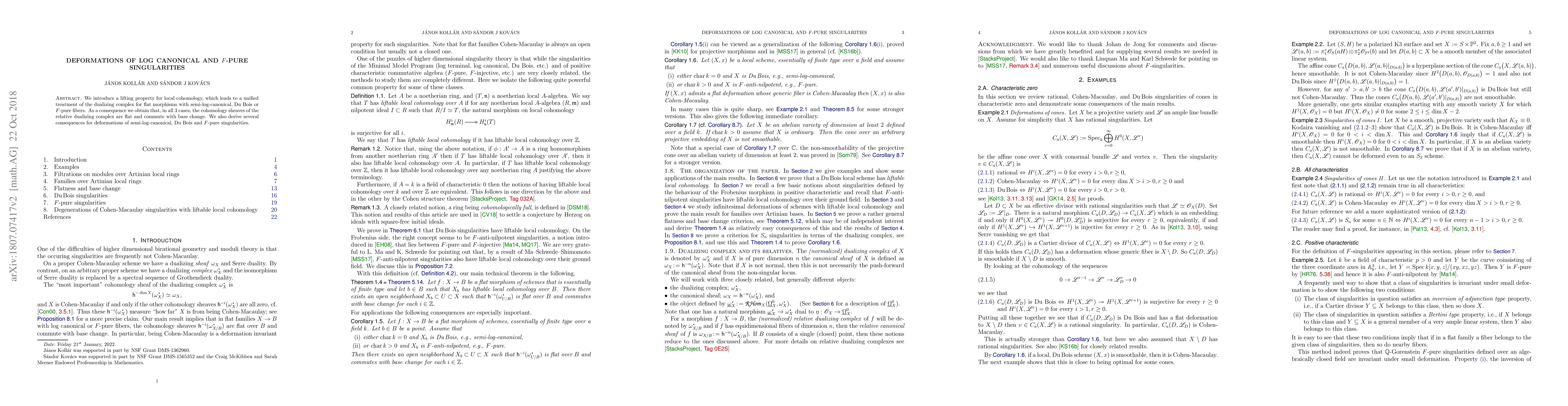 We introduce a lifting property for local cohomology, which leads to a unified treatment of the dualizing complex for flat morphisms with semi-log-canonical, Du Bois or F-pure fibers. As a consequence we obtain that, in all 3 cases, the cohomology sheaves of the relative dualizing complex are flat and commute with base change. We also derive several consequences for deformations of semi-log-canonical, Du Bois and F-pure singularities.