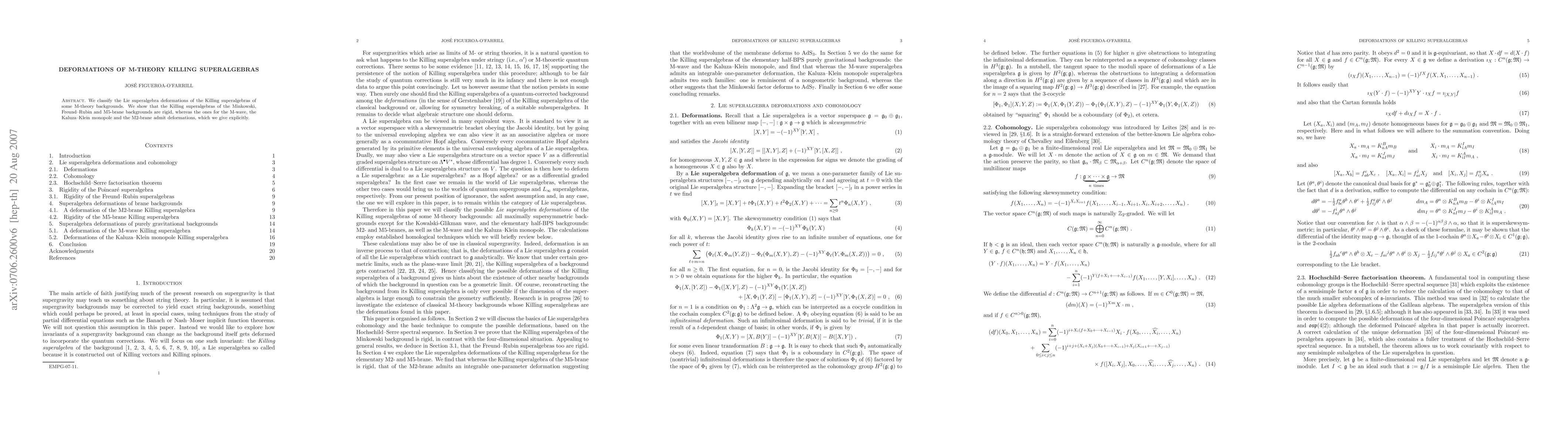 This paper classifies the Lie superalgebra deformations of Killing superalgebras in various M-theory backgrounds, finding that Minkowski, Freund-Rubin, and M5-brane backgrounds have rigid superalgebras, while M-wave, Kaluza-Klein monopole, and M2-brane backgrounds allow for explicit deformations.
