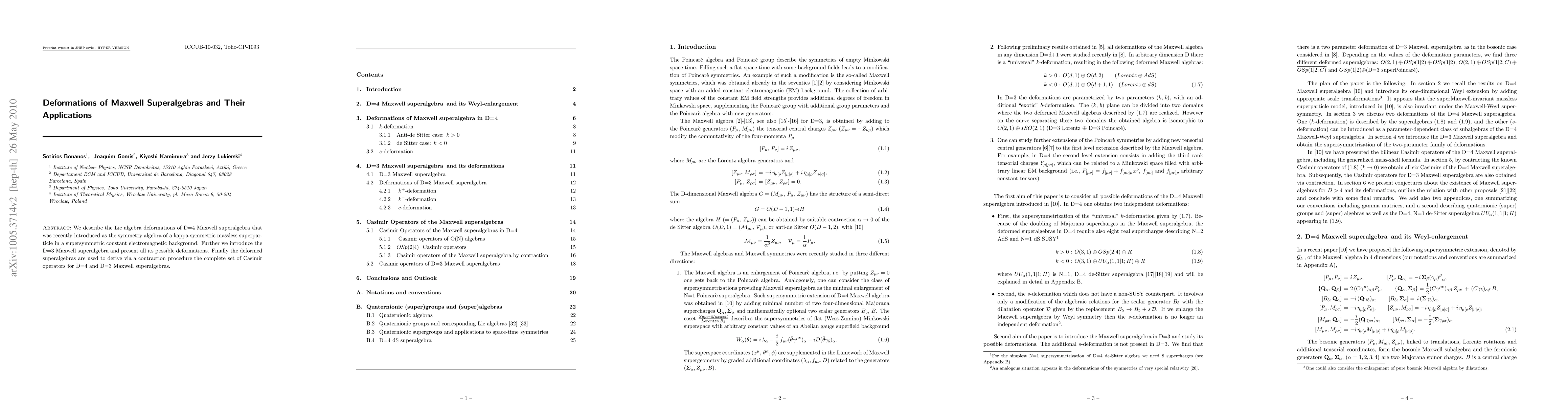 We describe the Lie algebra deformations of D=4 Maxwell superalgebra that was recently introduced as the symmetry algebra of a kappa-symmetric massless superparticle in a supersymmetric constant electromagnetic background. Further we introduce the D=3 Maxwell superalgebra and present all its possible deformations. Finally the deformed superalgebras are used to derive via a contraction procedure the complete set of Casimir operators for D=4 and D=3 Maxwell superalgebras.