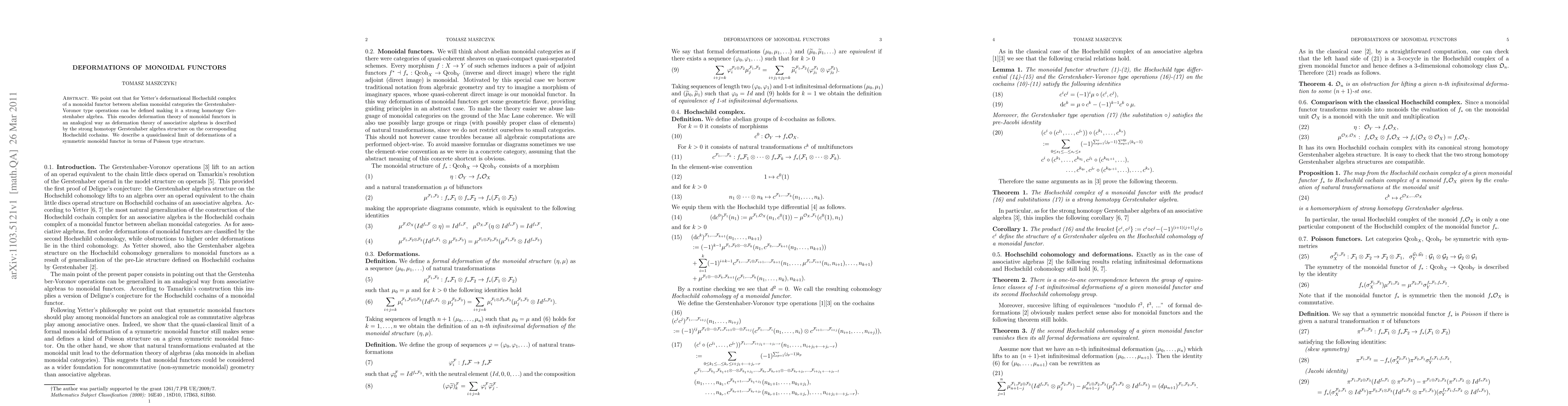We point out that for Yetter's deformational Hochschild complex of a monoidal functor between abelian monoidal categories the Gerstenhaber-Voronov type operations can be defined making it a strong homotopy Gerstenhaber algebra. This encodes deformation theory of monoidal functors in an analogical way as deformation theory of associative algebras is described by the strong homotopy Gerstenhaber algebra structure on the corresponding Hochschild cochains. We describe a quasi-classical limit of deformations of a symmetric monoidal functor in terms of Poisson type structure.