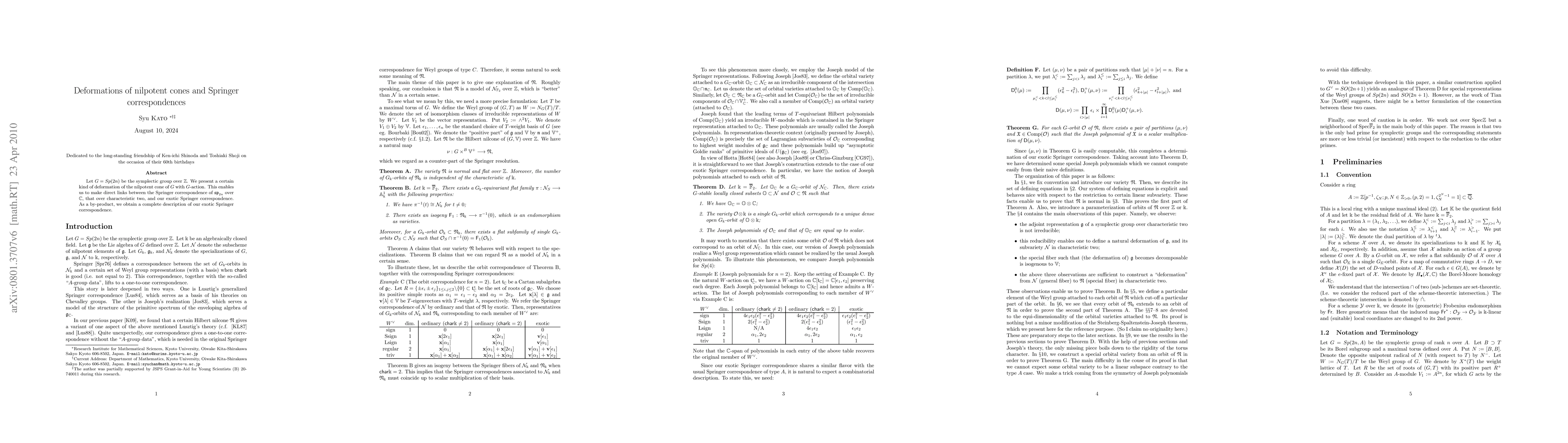 This paper explores deformations of the nilpotent cone in the symplectic group G = Sp(2n) and establishes connections between the Springer correspondences in different characteristics, ultimately providing a complete description of an exotic Springer correspondence.