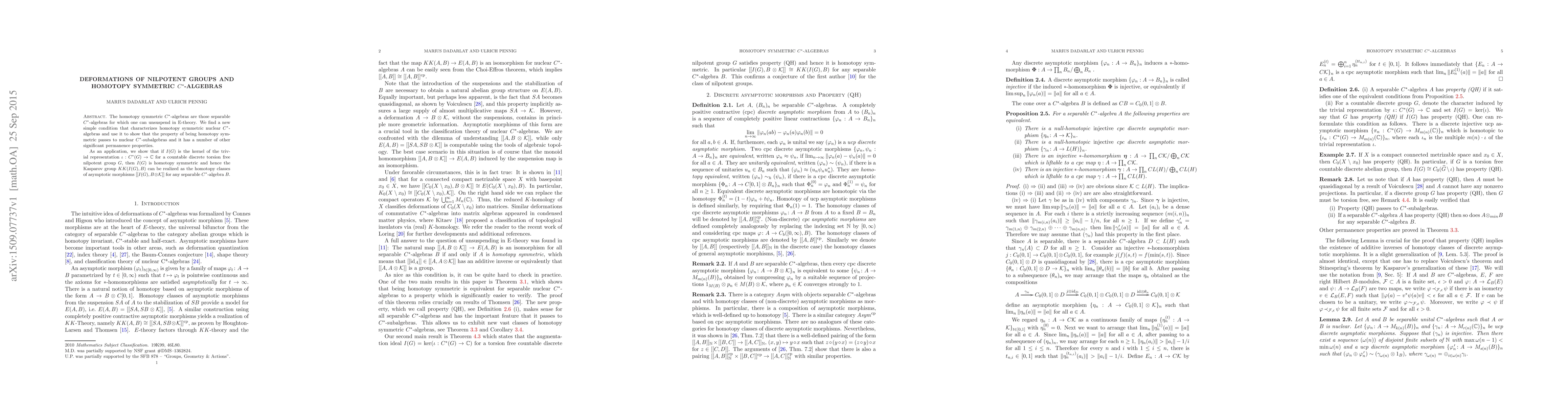 This paper introduces a new condition to characterize homotopy symmetric nuclear $C^*$-algebras and demonstrates their permanence properties. It applies this condition to nilpotent groups, proving that the kernel of their trivial representation is homotopy symmetric, thus allowing realization of $KK$-groups via asymptotic morphisms.