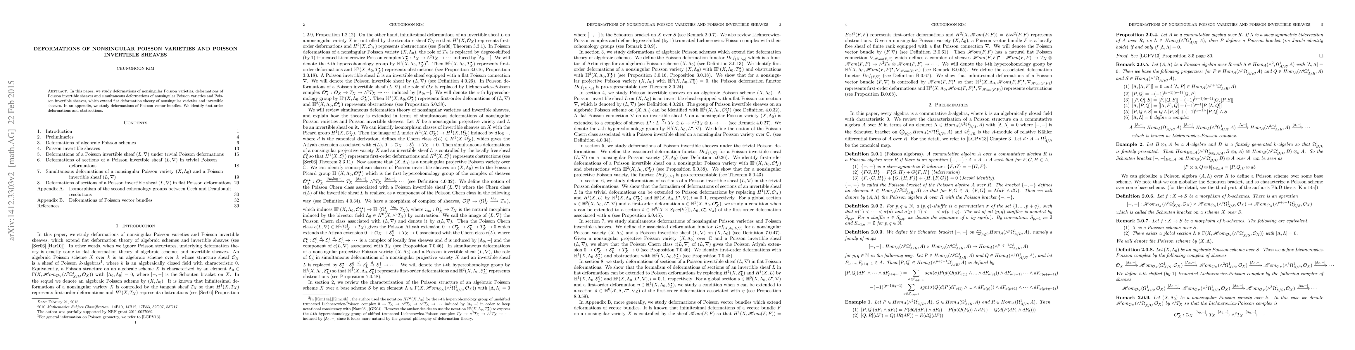 This paper investigates the deformations of nonsingular Poisson varieties and Poisson invertible sheaves, extending the flat deformation theory. It identifies first-order deformations and obstructions, and includes an appendix on deformations of Poisson vector bundles.