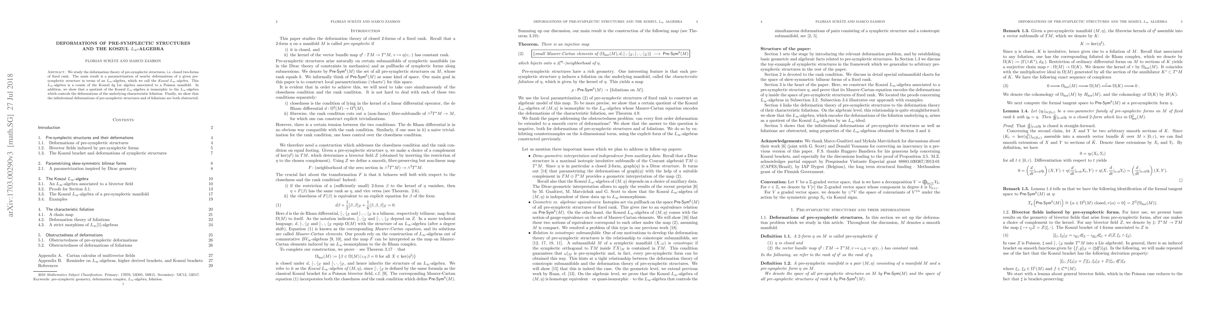 We study the deformation theory of pre-symplectic structures, i.e. closed two-forms of fixed rank. The main result is a parametrization of nearby deformations of a given pre-symplectic structure in terms of an $L_\infty$-algebra, which we call Koszul $L_\infty$-algebra. This $L_\infty$-algebra is a cousin of the Koszul dg Lie algebra associated to a Poisson manifold. In addition, we show that a quotient of the Koszul $L_{\infty}$-algebra is isomorphic to the $L_\infty$-algebra which controls the deformations of the underlying characteristic foliation. Finally, we show that the infinitesimal deformations of pre-symplectic structures and of foliations are both obstructed.