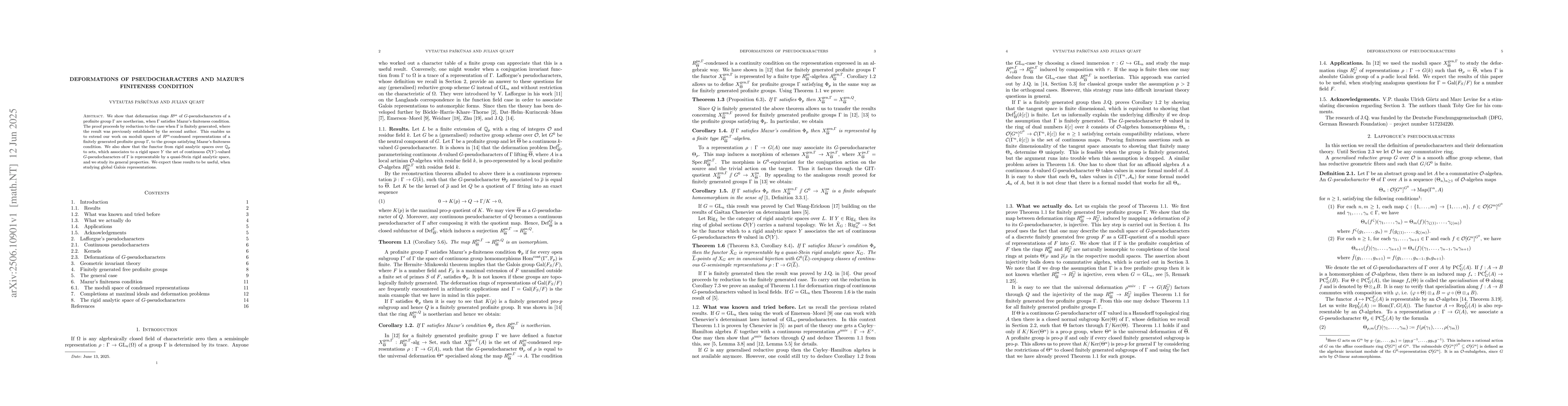 We show that deformation rings $R^{\mathrm{ps}}$ of $G$-pseudocharacters of a profinite group $\Gamma$ are noetherian, when $\Gamma$ satisfies Mazur's finiteness condition. The proof proceeds by reduction to the case when $\Gamma$ is finitely generated, where the result was previously established by the second author. This enables us to extend our work on moduli spaces of $R^{\mathrm{ps}}$-condensed representations of a finitely generated profinite group $\Gamma$, to the groups satisfying Mazur's finiteness condition. We also show that the functor from rigid analytic spaces over $\mathbb{Q}_p$ to sets, which associates to a rigid space $Y$ the set of continuous $\mathcal{O}(Y)$-valued $G$-pseudocharacters of $\Gamma$ is representable by a quasi-Stein rigid analytic space, and we study its general properties. We expect these results to be useful, when studying global Galois representations.