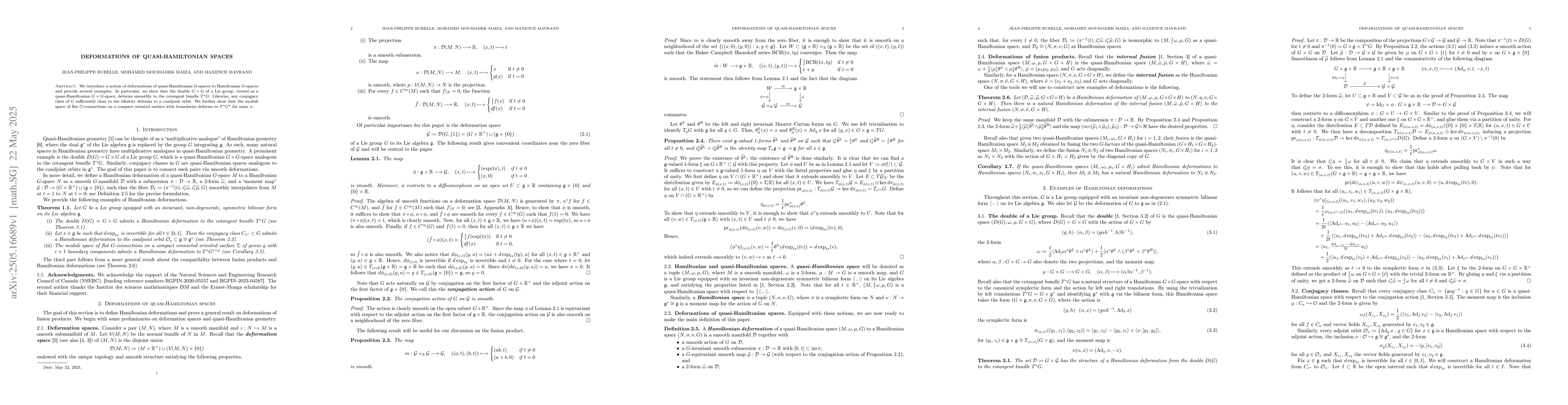 The paper introduces deformations of quasi-Hamiltonian G-spaces to Hamiltonian G-spaces, providing examples such as the smooth deformation of G×G to T*G and conjugacy classes to coadjoint orbits, along with the deformation of moduli spaces of flat G-connections.