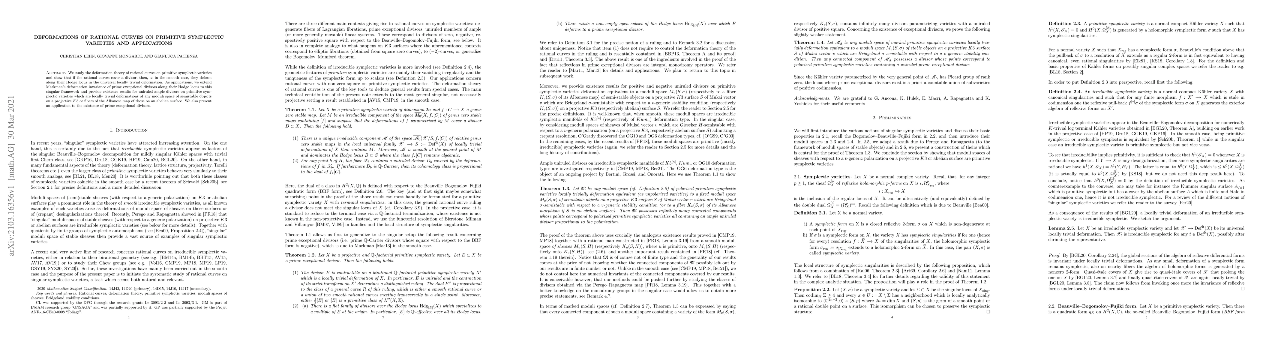This paper explores the deformation theory of rational curves on primitive symplectic varieties, demonstrating that such curves deform along their Hodge locus when covering a divisor. It extends Markman's deformation invariance results and provides existence proofs for uniruled ample divisors in this context, along with applications to prime exceptional divisors.
