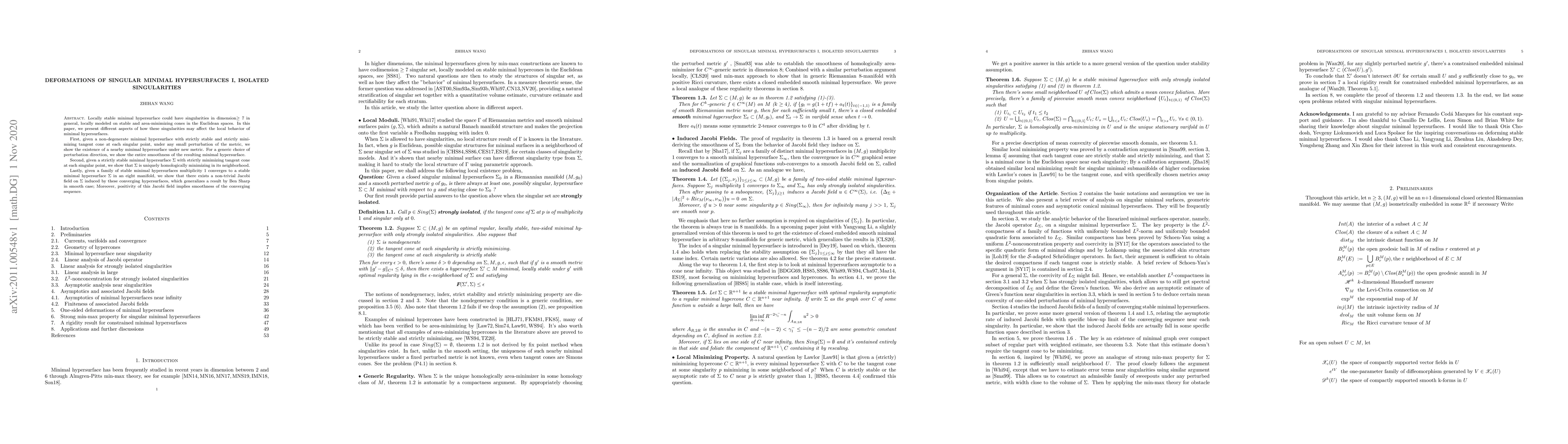 Locally stable minimal hypersurface could have singularities in dimension $\geq 7$ in general, locally modeled on stable and area-minimizing cones in the Euclidean spaces. In this paper, we present different aspects of how these singularities may affect the local behavior of minimal hypersurfaces. First, given a non-degenerate minimal hypersurface with strictly stable and strictly minimizing tangent cone at each singular point, under any small perturbation of the metric, we show the existence of a nearby minimal hypersurface under new metric. For a generic choice of perturbation direction, we show the entire smoothness of the resulting minimal hypersurface. Second, given a strictly stable minimal hypersurface $\Sigma$ with strictly minimizing tangent cone at each singular point, we show that $\Sigma$ is uniquely homologically minimizing in its neighborhood. Lastly, given a family of stable minimal hypersurfaces multiplicity $1$ converges to a stable minimal hypersurface $\Sigma$ in an eight manifold, we show that there exists a non-trivial Jacobi field on $\Sigma$ induced by these converging hypersurfaces, which generalizes a result by Ben Sharp in smooth case; Moreover, positivity of this Jacobi field implies smoothness of the converging sequence.