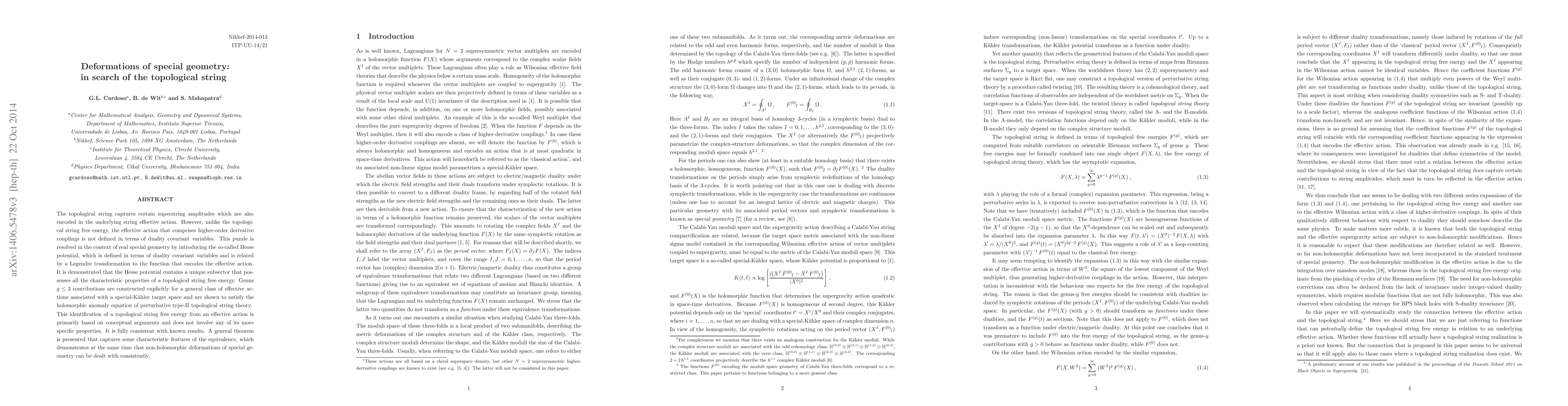 Researchers introduce a new framework in special geometry to resolve a long-standing puzzle related to topological strings, finding that certain effective actions can be expressed as topological string free energies.