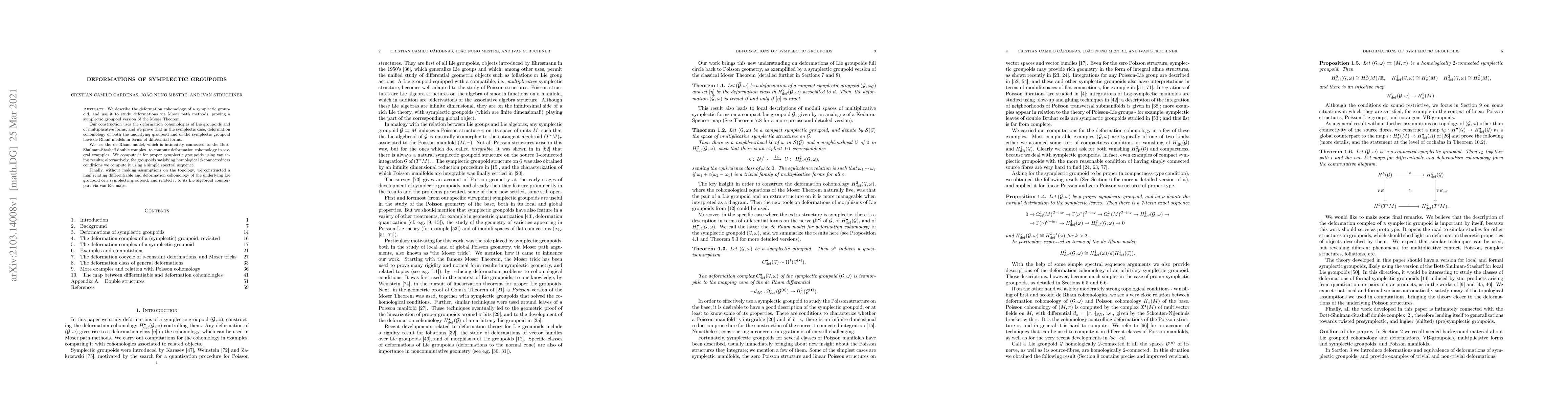 This paper explores the deformation cohomology of symplectic groupoids, employing it to study deformations through Moser path methods and proving a symplectic version of the Moser Theorem. It constructs de Rham models for both the underlying groupoid and the symplectic groupoid, using these models to compute deformation cohomology in various examples.