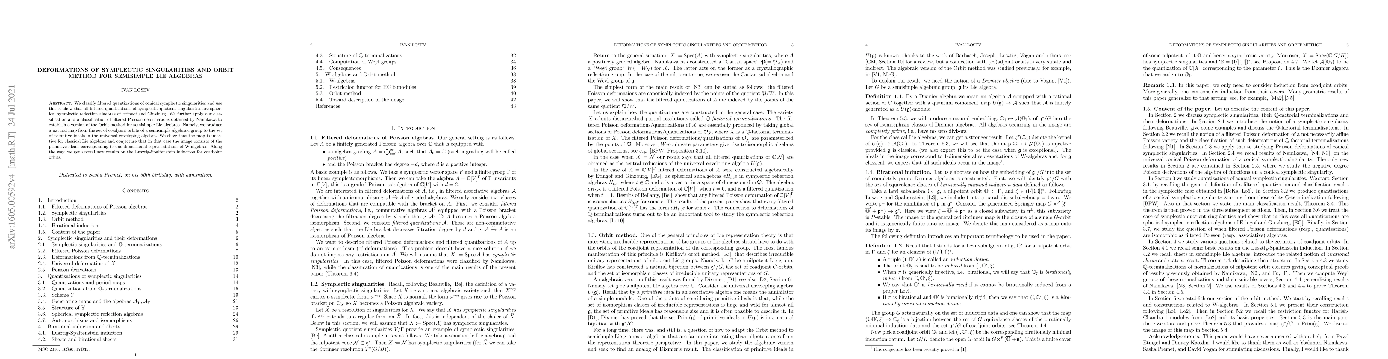 This paper classifies filtered quantizations of symplectic singularities and shows that they correspond to spherical Symplectic reflection algebras. It further develops an Orbit method for semisimple Lie algebras by establishing an injective map from adjoint orbits to primitive ideals in the universal enveloping algebra.