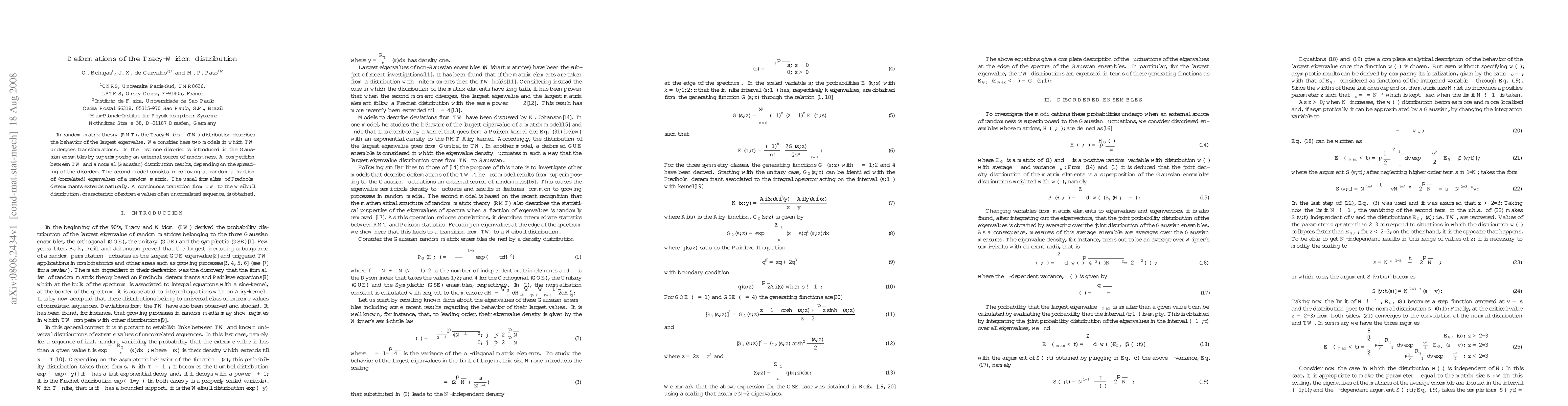 This paper explores deformations of the Tracy-Widom distribution in random matrix theory, examining two models: one where disorder is introduced in Gaussian ensembles, and another where a fraction of correlated eigenvalues is randomly removed, leading to transitions between the TW distribution and the Weibull distribution.