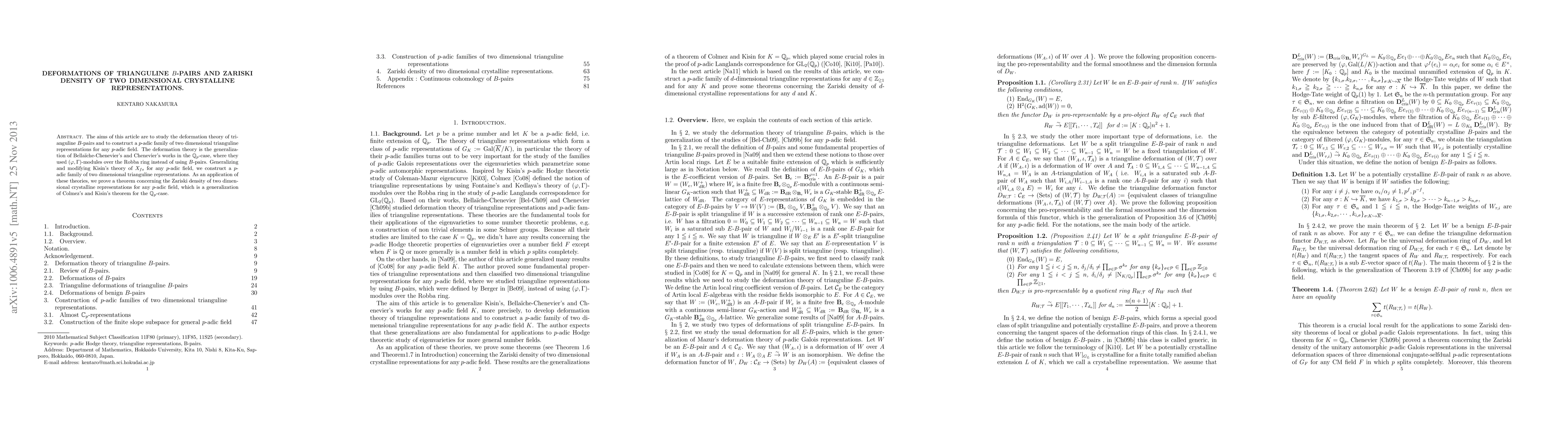 This paper studies the deformation theory of trianguline B-pairs for p-adic fields, proving a main theorem on tangent spaces for benign B-pairs. It also proves a theorem on the Zariski density of two-dimensional crystalline representations, extending previous results for Q_p.