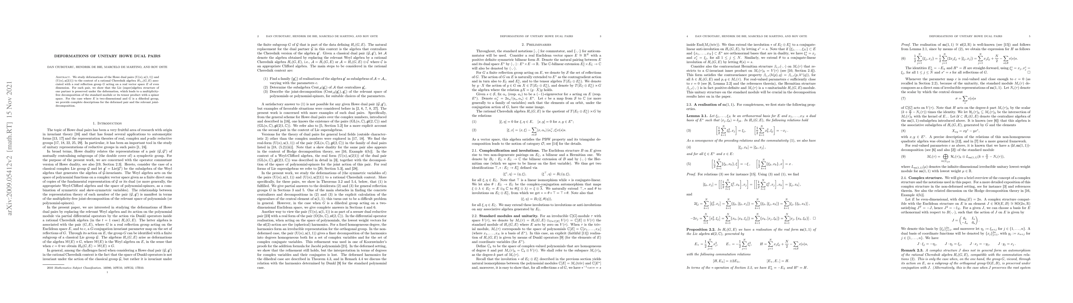 The paper establishes a framework for deforming Howe dual pairs using rational Cherednik algebras, preserving certain algebraic structures and leading to multiplicity-free decompositions.