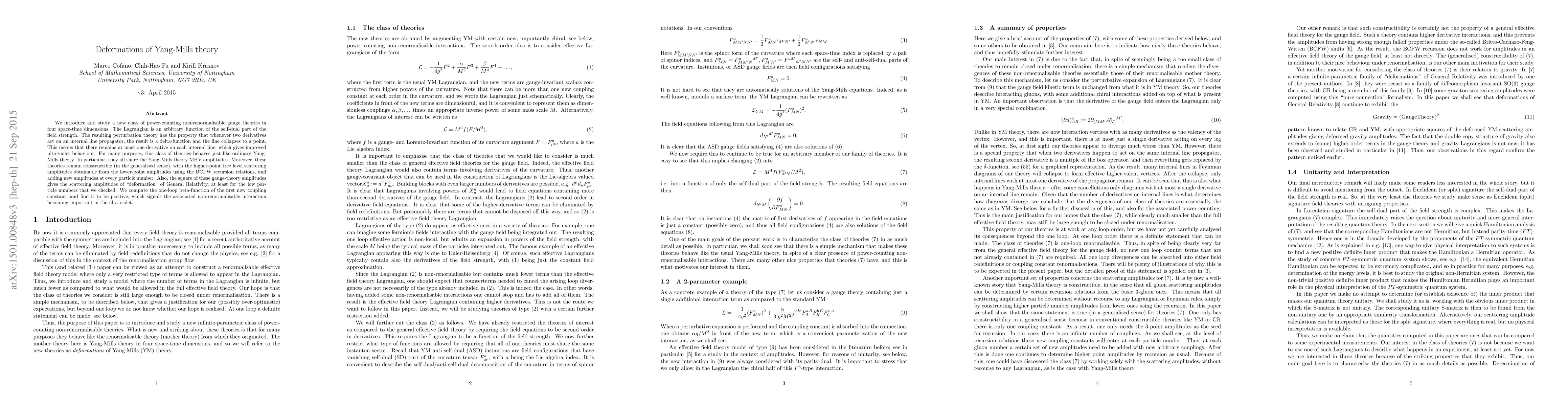 We introduce and study a new class of power-counting non-renormalisable gauge theories in four space-time dimensions. The Lagrangian is an arbitrary function of the self-dual part of the field strength. The resulting perturbation theory has the property that whenever two derivatives act on an internal line propagator, the result is a delta-function and the line collapses to a point. This means that there remains at most one derivative on each internal line, which gives improved ulta-violet behaviour. For many purposes, this class of theories behaves just like ordinary Yang-Mills theory. In particular, they all share the Yang-Mills theory MHV amplitudes. Moreover, these theories remain constructible in the sense that higher-point tree level scattering amplitudes can be obtained from the lower-point amplitudes using the BCFW recursion relations. Also, the square of these gauge-theory amplitudes gives the scattering amplitudes of "deformations" of General Relativity, at least for the low particle numbers that we checked. We compute the one-loop beta-function of the first new coupling constant, and find it to be positive, which signals the associated non-renormalisable interaction becoming important in the ulta-violet.