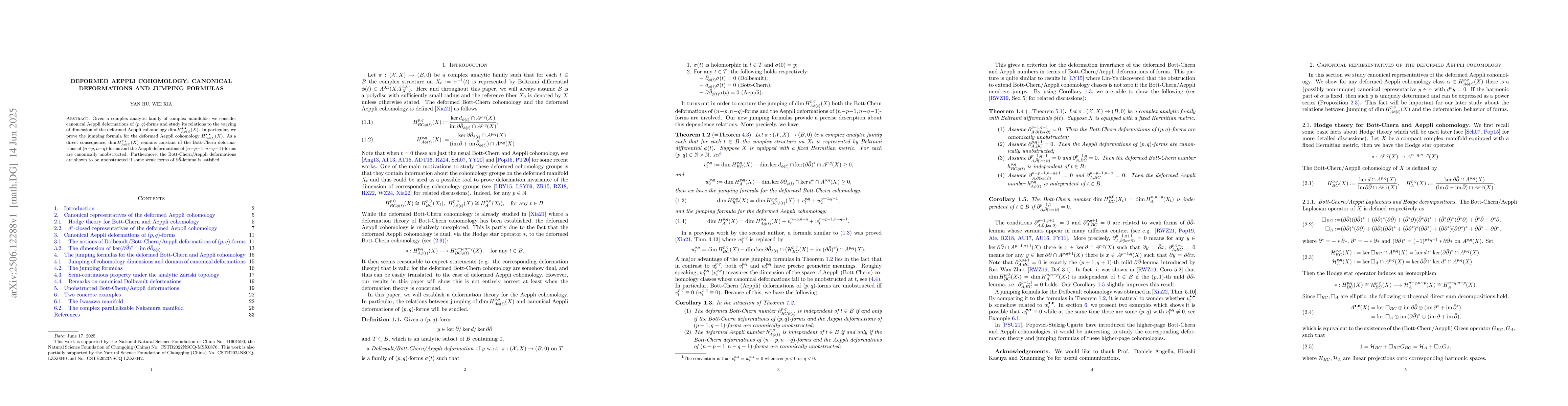 Given a complex analytic family of complex manifolds, we consider canonical Aeppli deformations of $(p,q)$-forms and study its relations to the varying of dimension of the deformed Aeppli cohomology $\dim H^{\bullet,\bullet}_{A\phi(t)}(X)$. In particular, we prove the jumping formula for the deformed Aeppli cohomology $H^{\bullet,\bullet}_{A\phi(t)}(X)$. As a direct consequence, $\dim H^{p,q}_{A\phi(t)}(X)$ remains constant iff the Bott-Chern deformations of $(n-p,n-q)$-forms and the Aeppli deformations of $(n-p-1,n-q-1)$-forms are canonically unobstructed. Furthermore, the Bott-Chern/Aeppli deformations are shown to be unobstructed if some weak forms of $\partial\bar{\partial}$-lemma is satisfied.