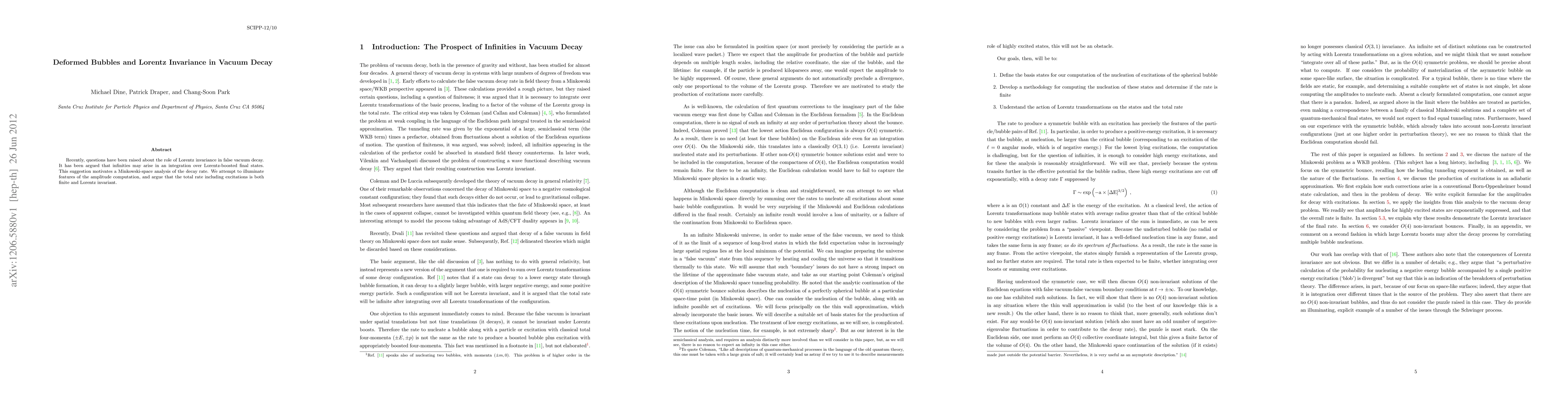 This paper investigates the role of Lorentz invariance in vacuum decay, addressing concerns about potential infinities in boosted final states. It concludes that the total decay rate, including excitations, is both finite and Lorentz invariant.