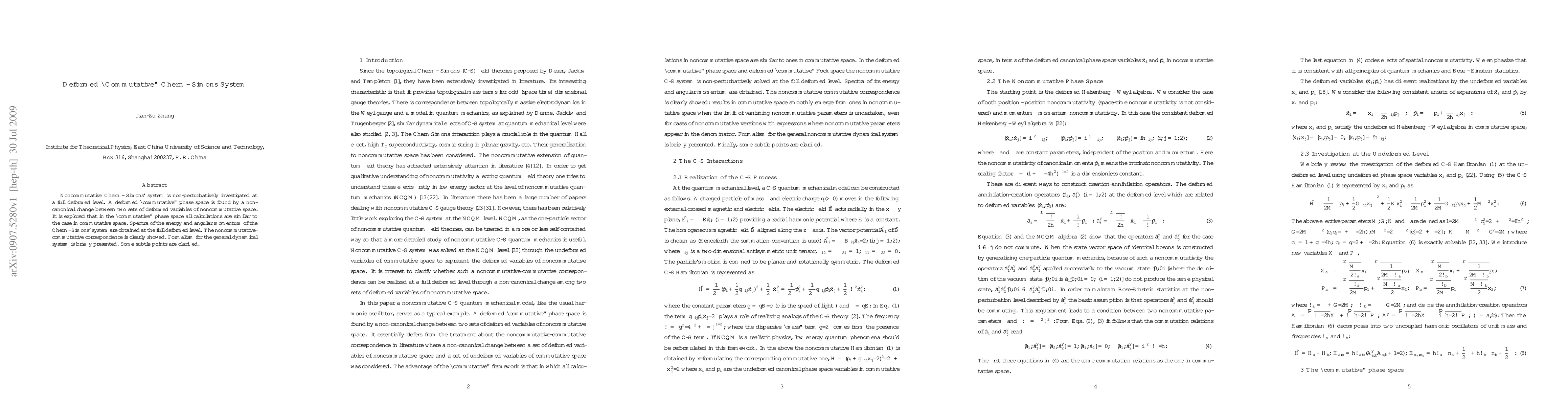 Noncommutative Chern - Simons' system is non-perturbatively investigated at a full deformed level. A deformed "commutative" phase space is found by a non-canonical change between two sets of deformed variables of noncommutative space. It is explored that in the "commutative" phase space all calculations are similar to the case in commutative space. Spectra of the energy and angular momentum of the Chern - Simons' system are obtained at the full deformed level. The noncommutative-commutative correspondence is clearly showed. Formalism for the general dynamical system is briefly presented. Some subtle points are clarified.
