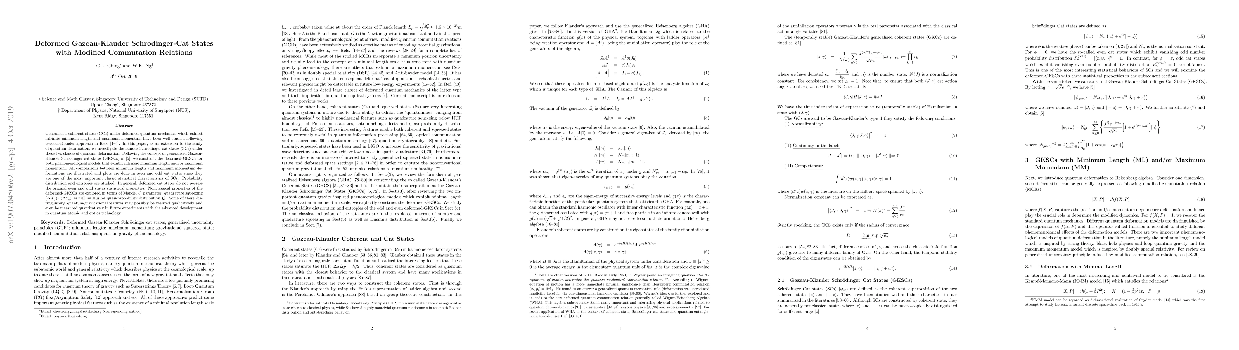 This paper explores the construction and properties of deformed Gazeau-Klauder Schrödinger-cat states (GKSCs) under quantum deformation models with intrinsic minimum length and maximum momentum. It investigates non-classical properties and statistical characteristics of these states, suggesting potential future experimental realizations with advanced quantum technology.