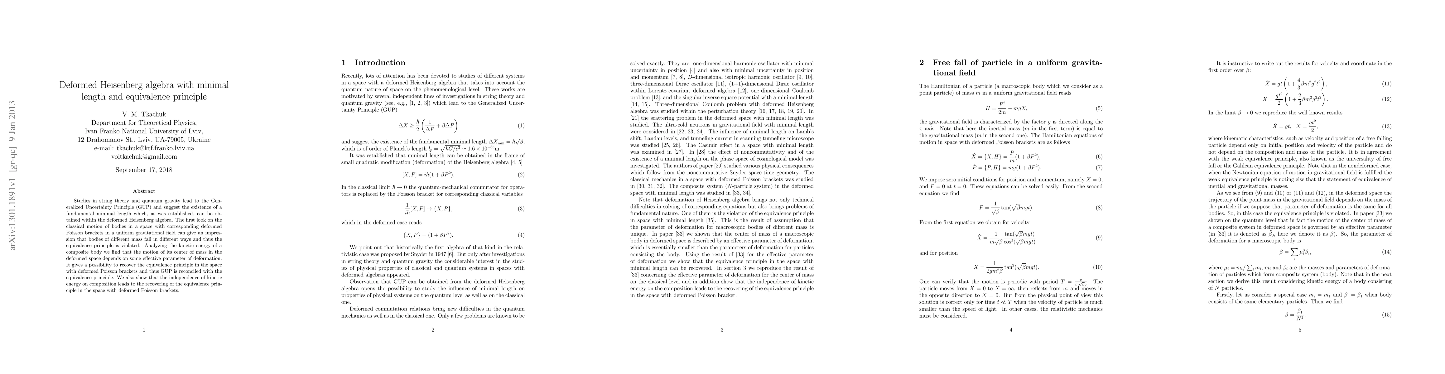 This paper explores the Generalized Uncertainty Principle (GUP) in the context of string theory and quantum gravity, demonstrating how a deformed Heisenberg algebra can incorporate a fundamental minimal length. It also shows that the equivalence principle can be reconciled in a deformed space by analyzing the kinetic energy of composite bodies, thus aligning GUP with the equivalence principle.